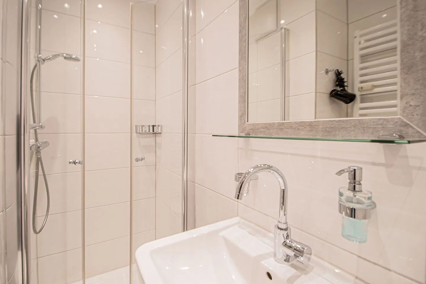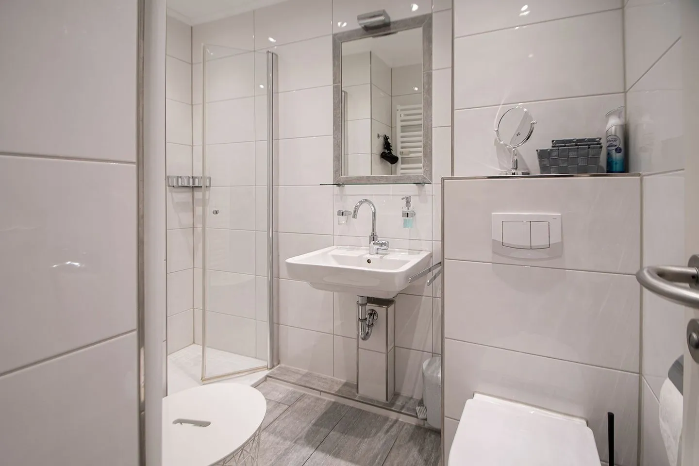 Das Appartement ist mit einem Schlafbereich für zwei Personen, einem Badezimmer mit Dusche, Waschbecken, WC sowie Spiegel und Kosmetikspiegel ausgestattet. Für längere Aufenthalte oder zusätzlichen Komfort stehen Ihnen eine gemeinschaftlich nutzbare Waschmaschine und ein Trockner zur Verfügung. Ein modernes Heizsystem sorgt auch in der kühleren Jahreszeit für angenehme Temperaturen.