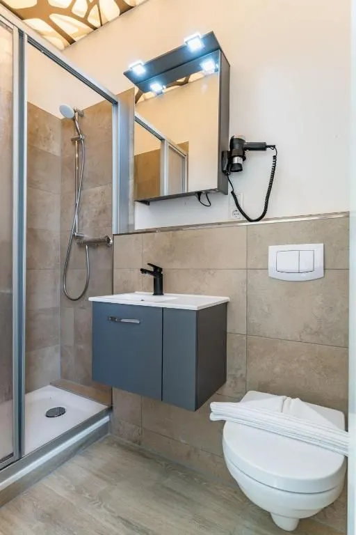 Das separate Badezimmer verfügt über eine Dusche, ein WC, ein Waschbecken, warmes Wasser und einen Spiegel – ideal für die tägliche Pflege. Ein installierter Rauchmelder gewährleistet zusätzliche Sicherheit während Ihres Aufenthalts.