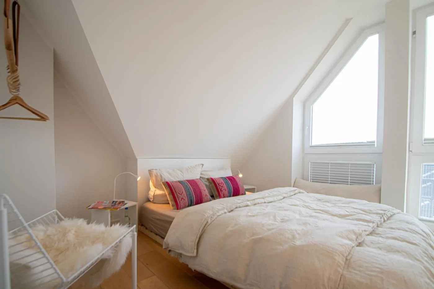 ausgestattet. Ein drittes Schlafzimmer mit einem Einzelbett befindet sich im Dachgeschoss.