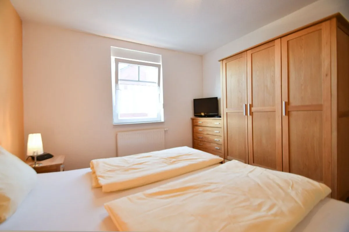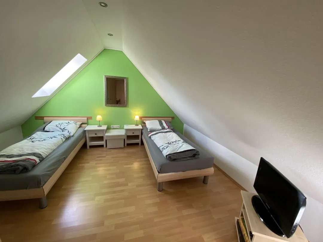 Zwei Schlafräume sorgen auch bei größeren Familien für eine erholsame Nachtruhe. Ein Schlafzimmer ist mit einem gemütlichen Doppelbett ausgestattet, im anderen finden Sie zwei Einzelbetten. Kleiderschränke, Nachttische und Nachttischlampen sind in beiden Schlafräumen vorhanden. Ein Kinderreisebett steht ohne Aufpreis für Sie bereit. Beide Schlafzimmer haben einen Fernseher.