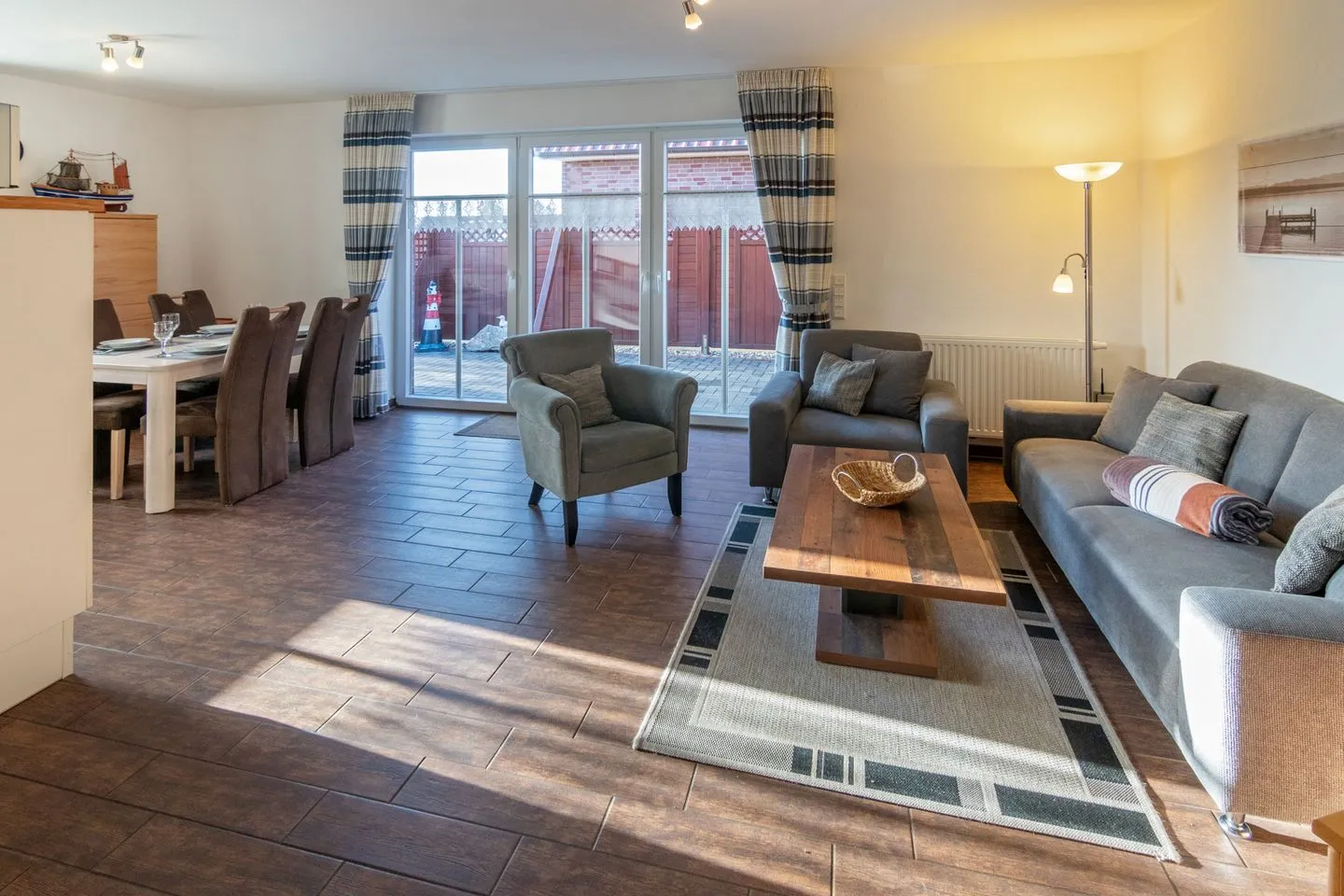 Gemütliche Ferienwohnung, die auf ca. 52qm Platz für zwei Personen + 1 Kleinkind (in Reisebettchen) bietet. Die Unterkunft befindet sich in einem ruhigen Appartementhaus mit sechs Wohneinheiten. Die sehr gute Lage in einer ruhigen Nebenstraße im Zentrum Norddeichs ist ein weiterer Pluspunkt dieser schönen Ferienwohnung. Von hier aus erreichen Sie problemlos alle touristischen Einrichtungen, Geschäfte und Restaurants. Der Deich ist ca. 400m entfernt.