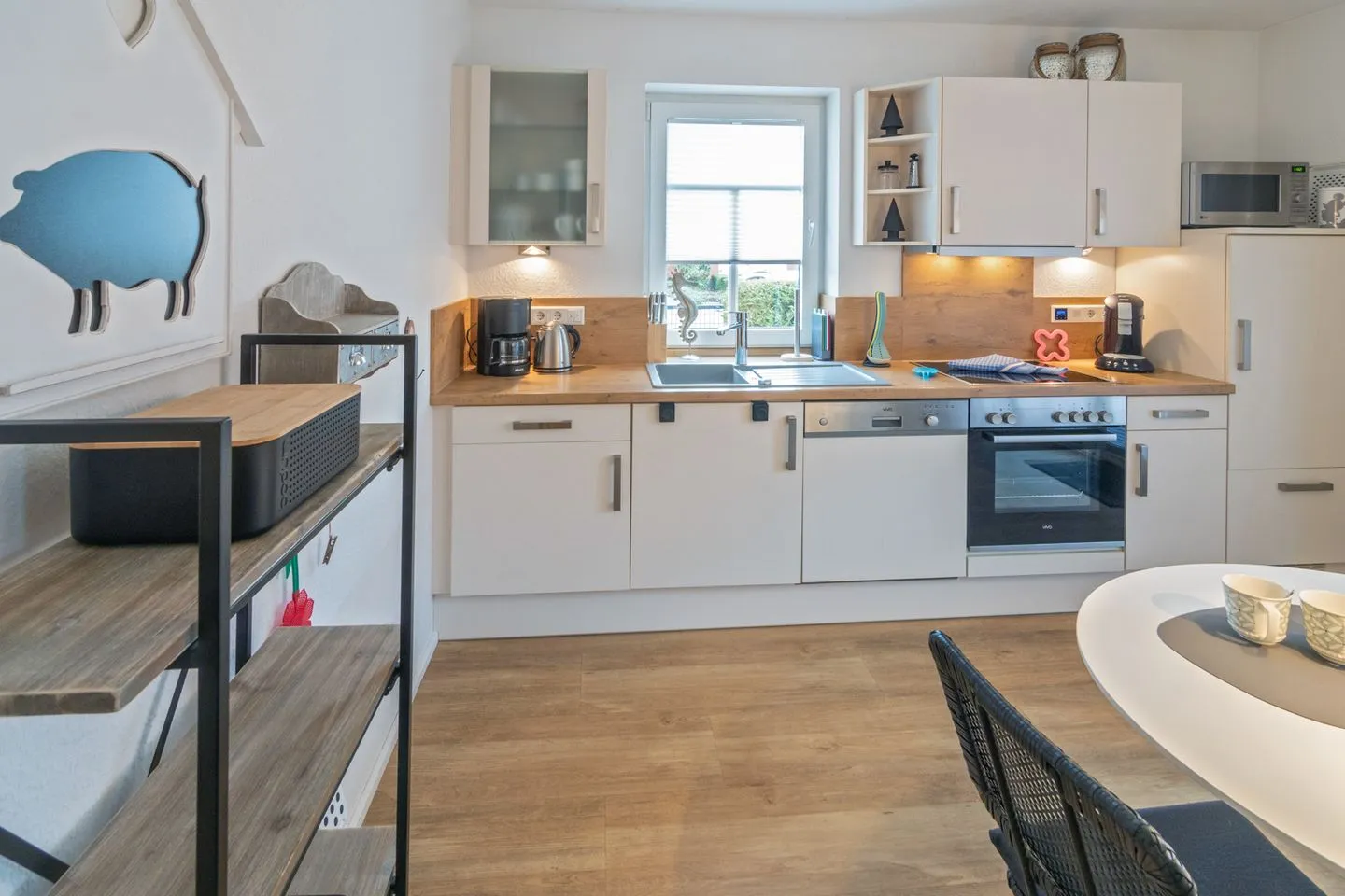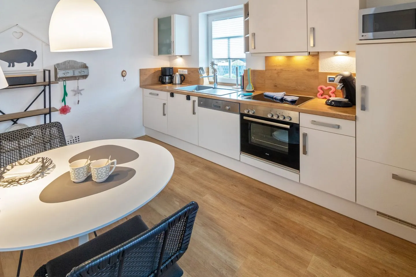 Die Ferienwohnung verfügt über eine großzügige Einbauküche mit 4-Zonen-Cerankochfeld inklusive Dunstabzug, Backofen, Mikrowelle, Kühlschrank mit Gefrierfach, Spülbecken plus Spülmaschine. Für Kaffeefreunde bieten wir neben der normalen Kaffeemaschine eine Senseo-Pad-Maschine, sowie eine Nespresso-Maschine an.