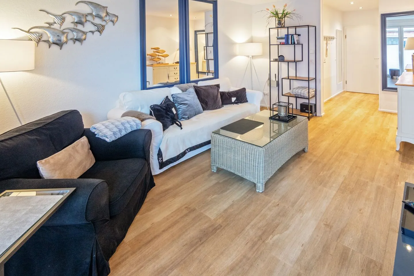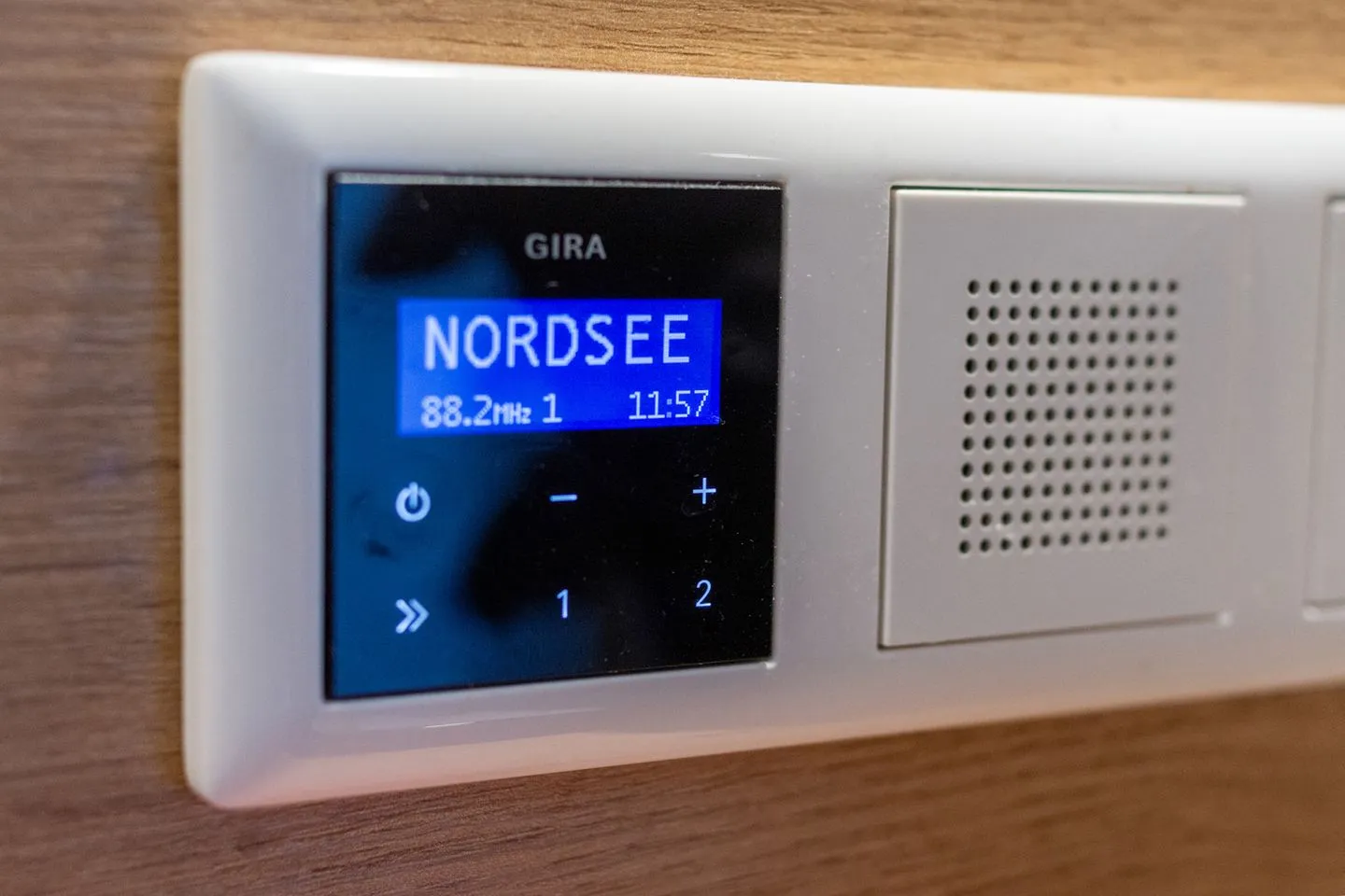 Die maritim hochwertige Ausstattung, sowie die elektronisch steuerbare Fußbodenheizung sorgen für ein angenehmes Wohlfühlklima zu jeder Jahreszeit. Eine gemütliche Sofaecke, 48 Zoll LED-TV mit Blue-Ray-Player, Einbauwandradio, elektrische Rollläden sind weitere Ausstattungsmerkmale.