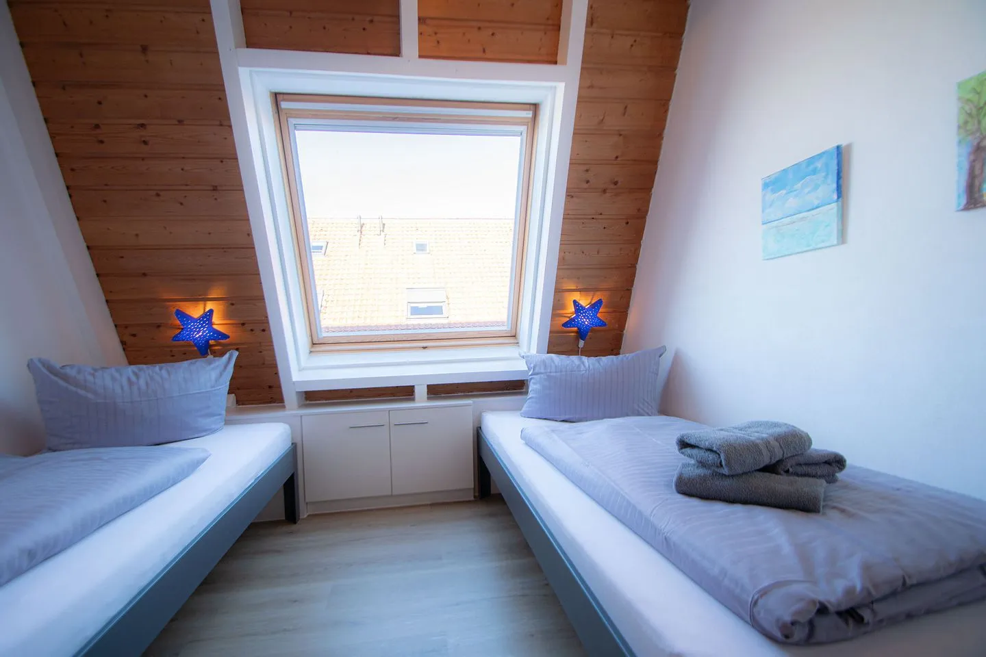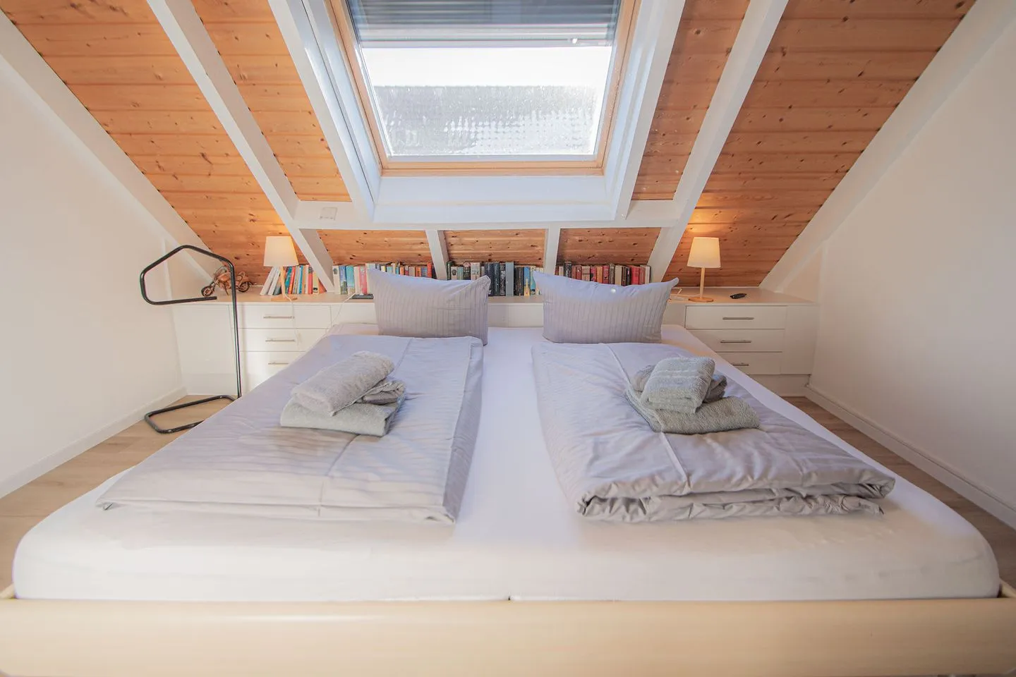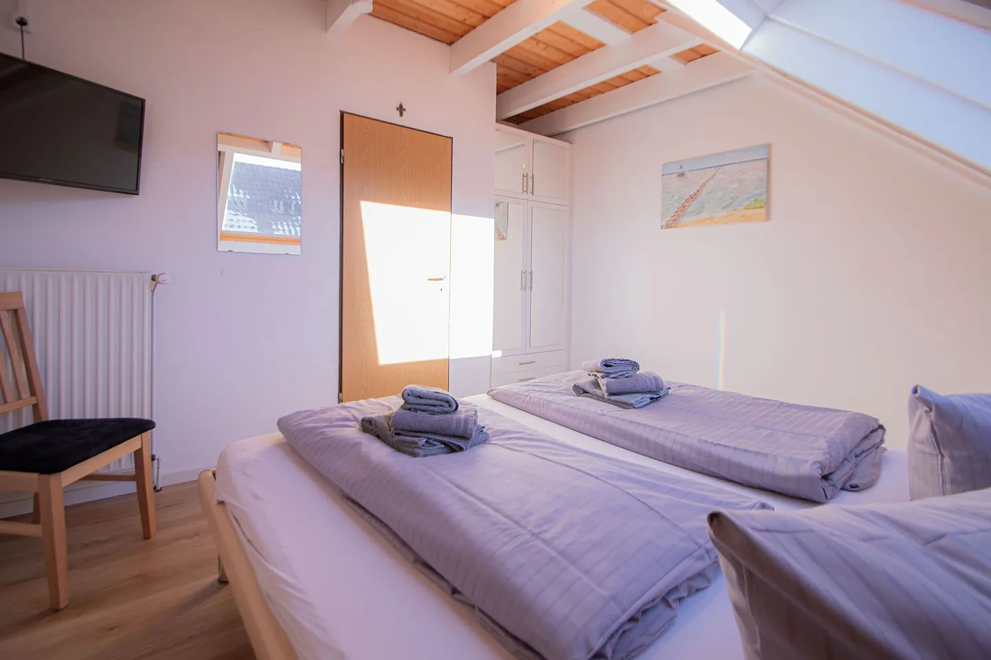Ihre Wohnung im 1 Obergeschoss verfügt über zwei Schlafzimmer. Eines mit einem Doppelbett und Eines mit zwei Einzelbetten. Zwei Nachttische und Kleiderschrank mit ausreichend Kleiderbügeln. Tresor im großen Schlafzimmer im Schrank vorhanden. Auf Anfrage stellen wir Ihnen auch gerne Bettwäsche, Hand & Badetücher gegen eine geringe Nutzungsgebühr zur Verfügung. Selbstverständlich dürfen Sie auch Ihre Lieblingswäsche von Daheim mitbringen.
