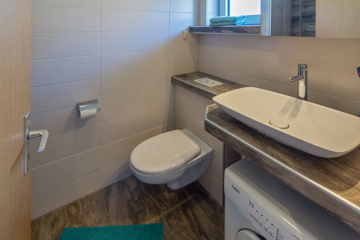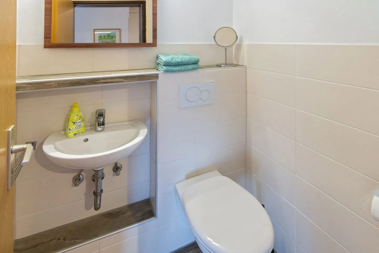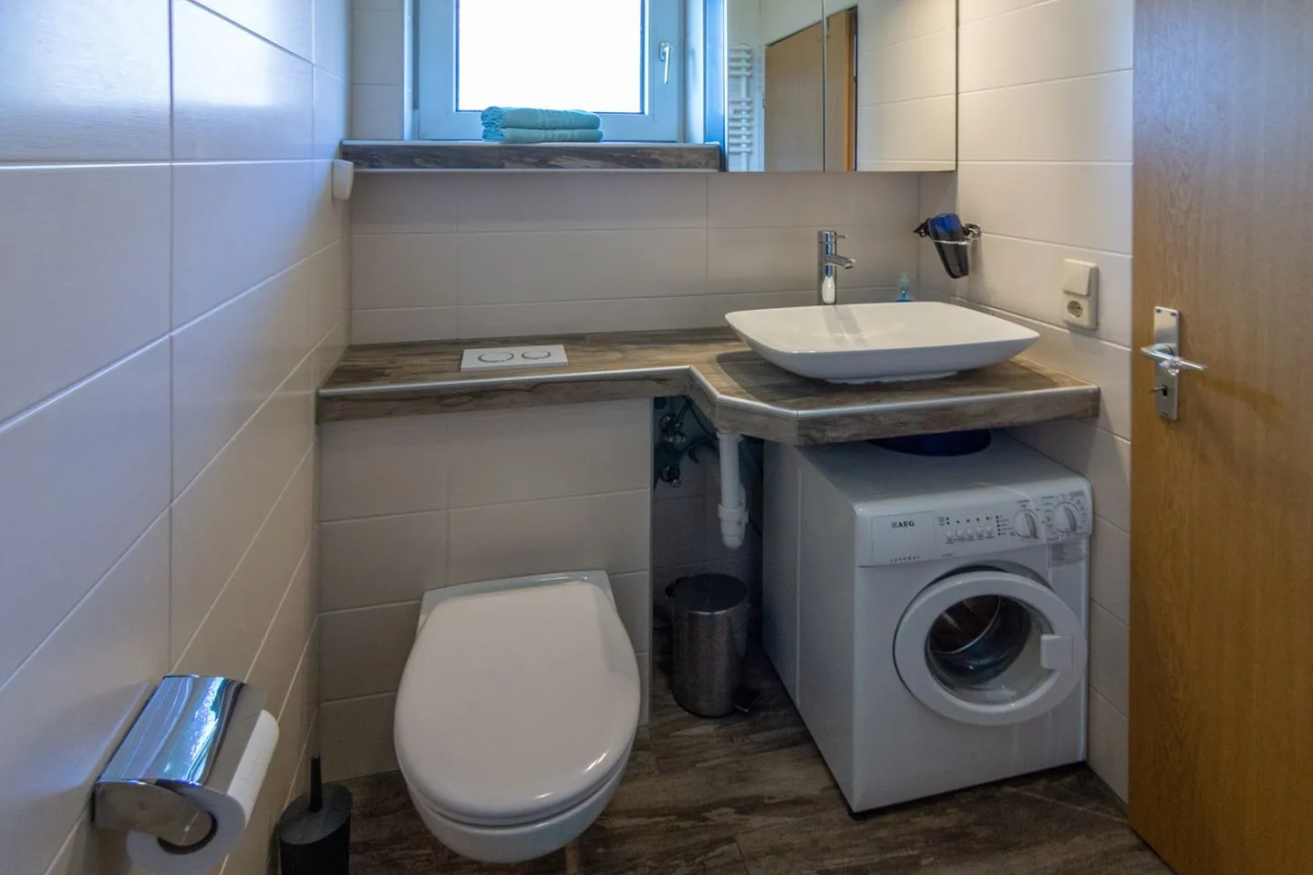 Für den frischen Start in den Tag finden Sie in Ihrem kleinen Badezimmer eine Dusche, ein WC und eine Waschkombination mit großem Spiegel, sowie ein Fön machen Ihre Ausstattung im Bad komplett. Ihre eigene Waschmaschine befindet sich ebenfalls hier. Zweites WC Im Obergeschoss (1. Etage) befindet sich ein kleines Extra WC.