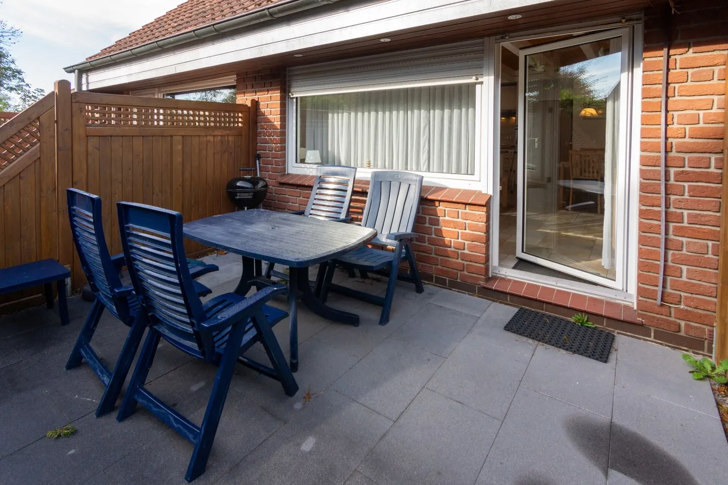 Die helle und freundliche Atmosphäre dieser Ferienwohnung lädt zum Entspannen und Wohlfühlen ein. Das lichtdurchflutete Wohnzimmer ist mit einem TV ausgestattet und bietet genügend Platz, um gemütliche Abende zu verbringen. Die voll ausgestattete Küche hält alles bereit, was Sie benötigen, um kulinarische Köstlichkeiten zu zaubern – vom Herd über die Spülmaschine bis hin zur Mikrowelle. Genießen Sie Ihre Mahlzeiten am Esstisch oder auf der eigenen Terrasse, wo Gartenmöbel für entspannte Stunden im Freien bereitstehen. Hier können Sie bei einem Glas Wein den Sonnenuntergang genießen oder einfach die frische Nordseeluft einatmen.