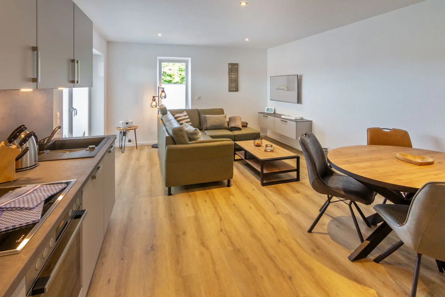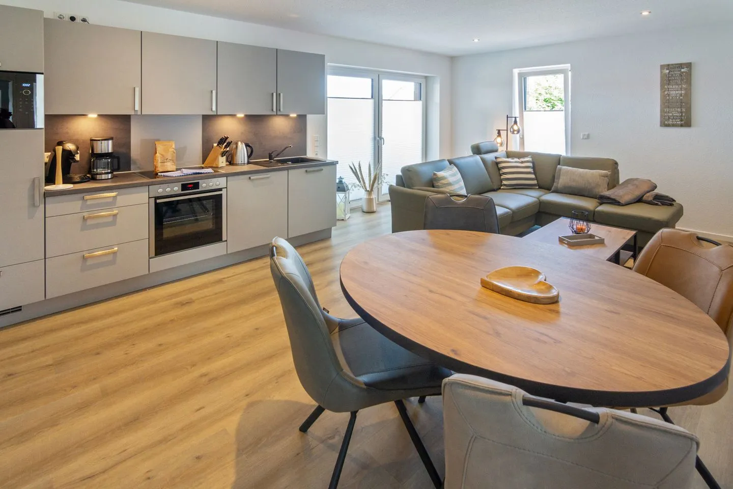 Die Ferienwohnung verfügt über eine großzügige Einbauküche mit Neff-Geräten - 4-Zonen-Cerankochfeld inklusive Dunstabzug, Backofen, Mikrowelle, Kühlschrank mit Gefrierfach, Spülbecken plus Spülmaschine, Kaffeemaschine & Senseo-Padmaschine.