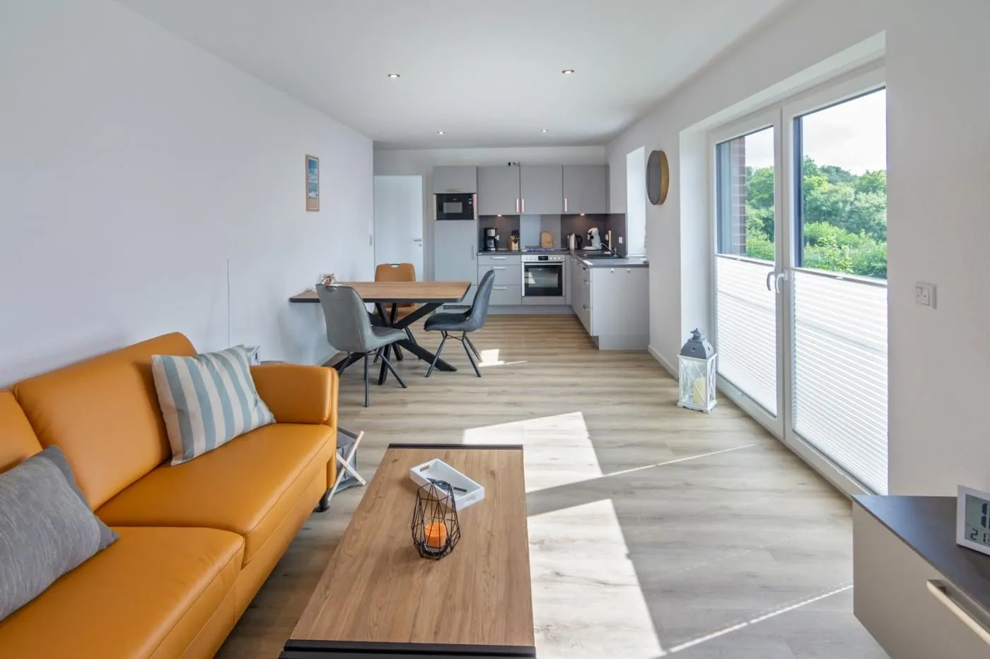 Die Ferienwohnung verfügt über eine großzügige Einbauküche mit hochwertigen Geräten, 4-Zonen-Induktionskochfeld inklusive Dunstabzug, Backofen, Mikrowelle, Kühlschrank mit Gefrierfach, Spülbecken plus Spülmaschine, Kaffeemaschine & Senseo-Padmaschine.