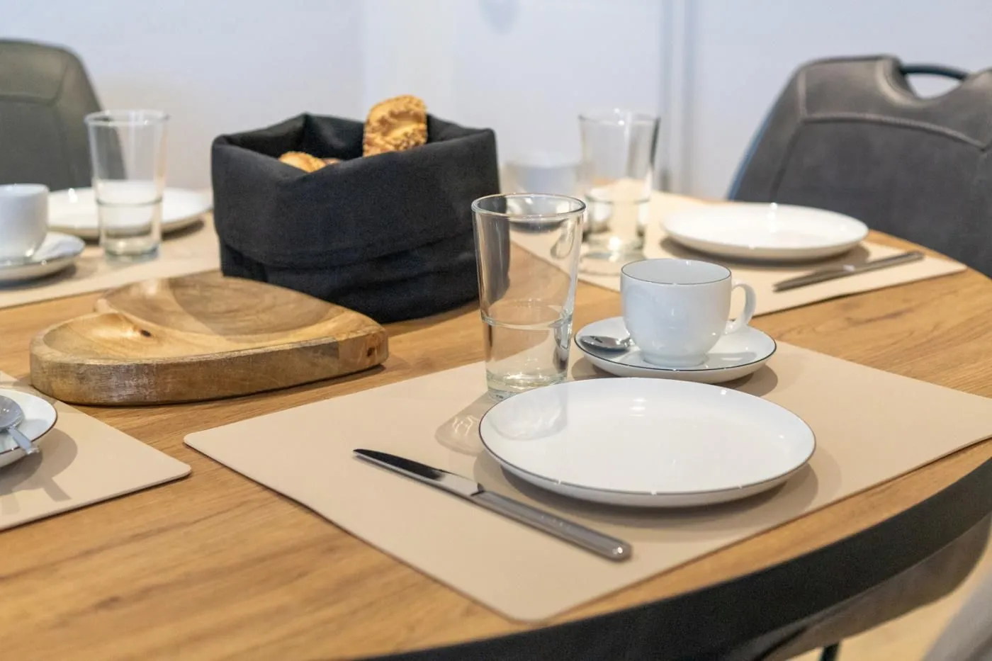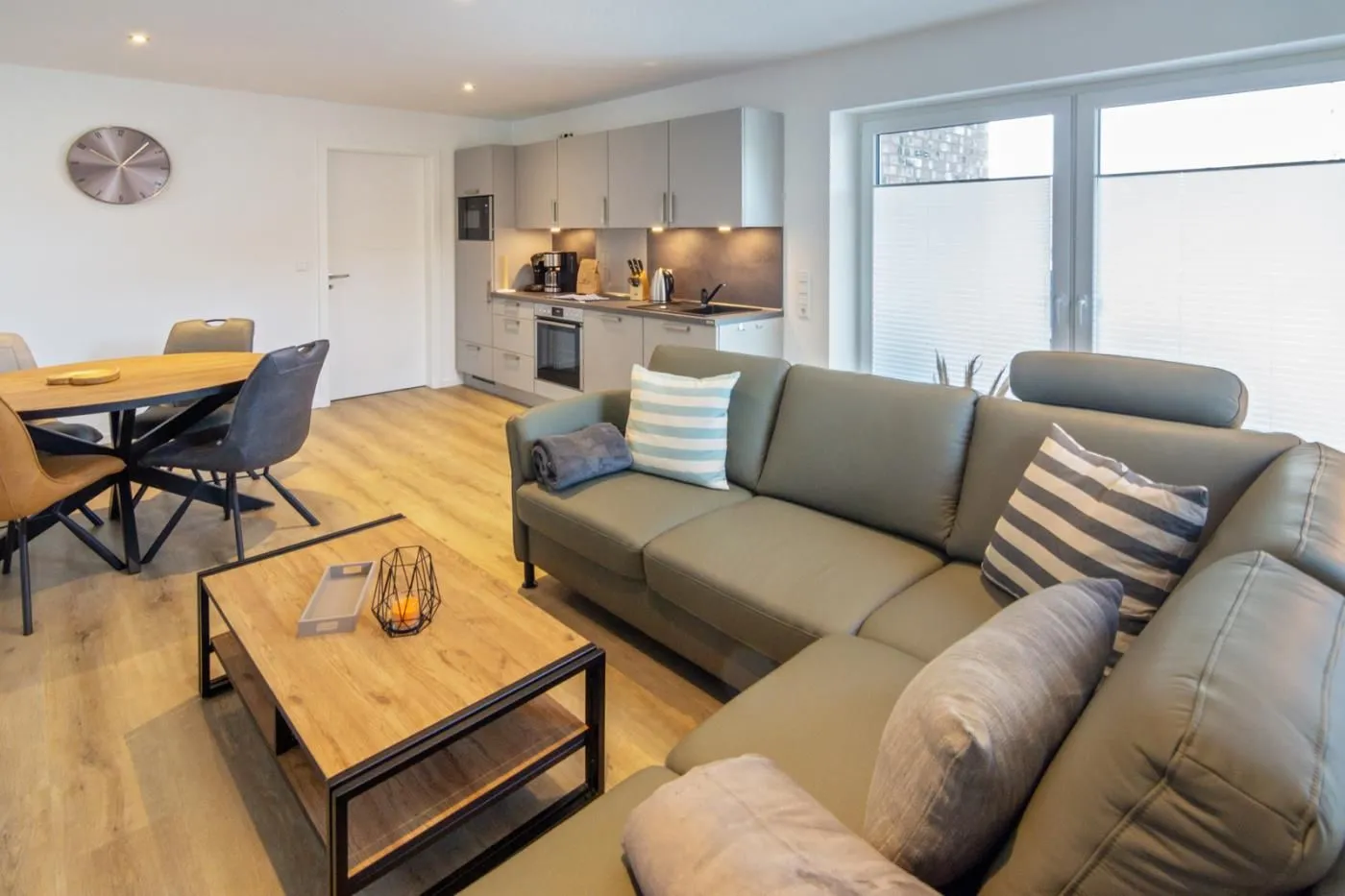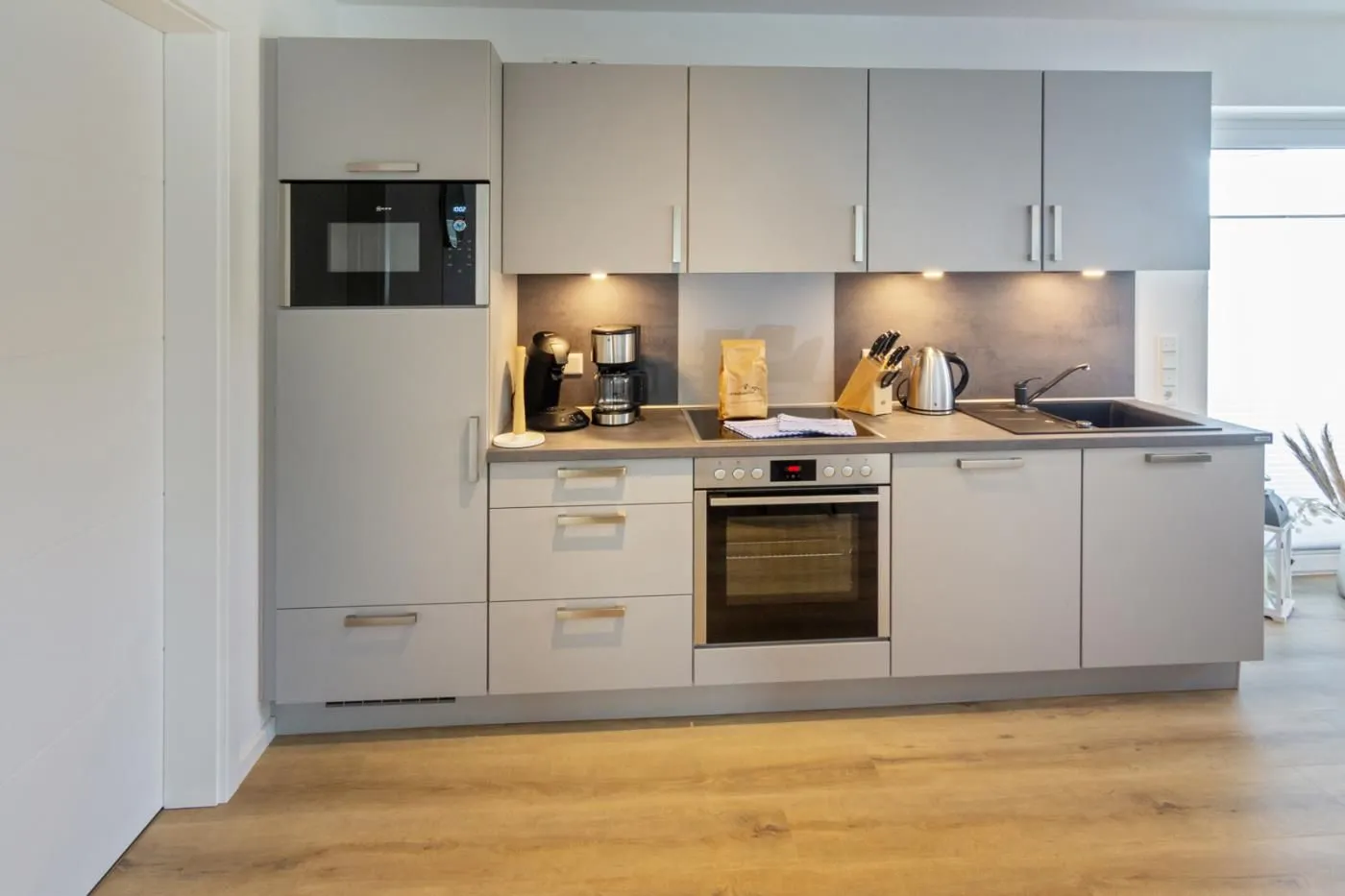 Die Ferienwohnung verfügt über eine großzügige Einbauküche mit 4-Zonen-Induktionskochfeld inklusive Dunstabzug, Backofen, Mikrowelle, Kühlschrank mit Gefrierfach, Spülbecken plus Spülmaschine, Kaffeemaschine & Senseo-Padmaschine.