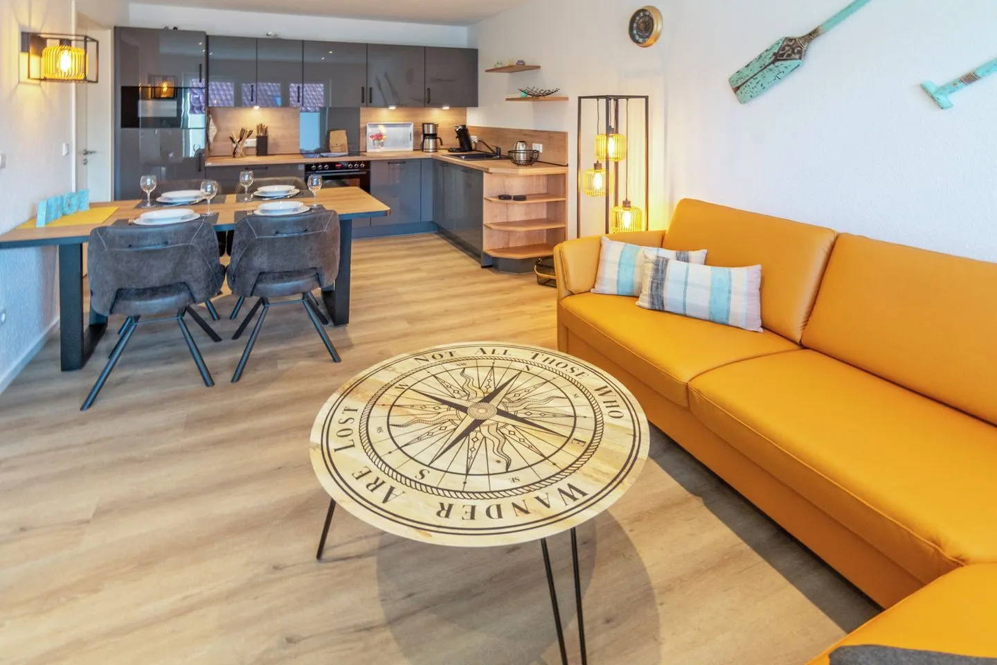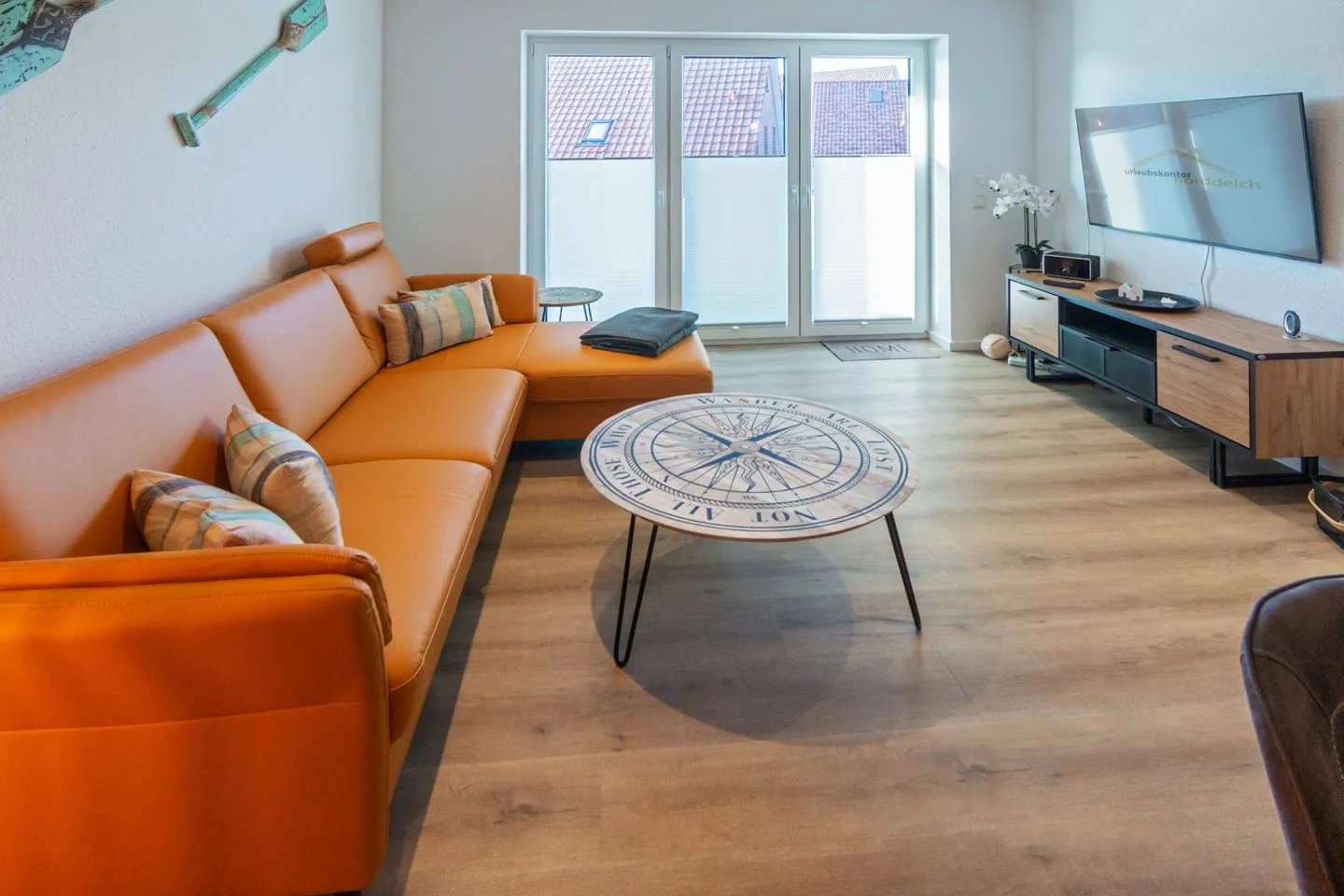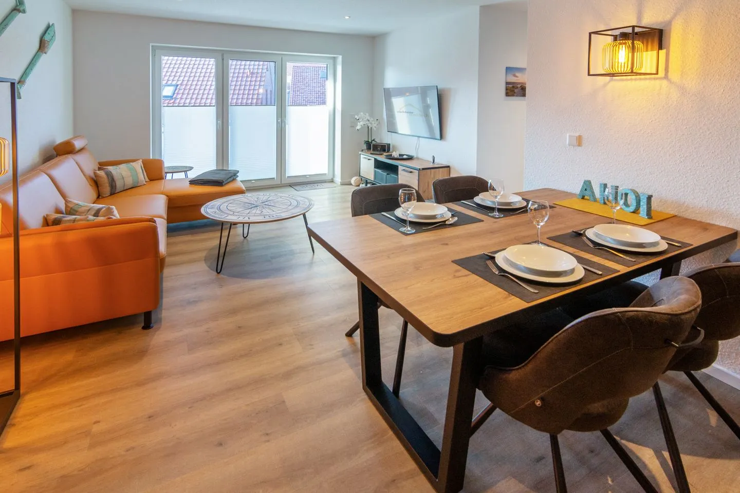 Mit drei Zimmern, darunter zwei separate Schlafzimmer mit hochwertigen Vinylböden und zwei Bädern & zusätzlichem Gäste WC eignet sich das Domizil Deichloft C5 für bis zu vier Übernachtungsgäste. Das geräumige Wohnzimmer mit gemütlicher Sofaecke ist offen zur modernen Küche gestaltet und lädt zum Verweilen ein. Die Ausstattung umfasst einen großen Satelliten-TV mit internationalen Kanälen, Radio sowie schnelles WLAN mit einer Geschwindigkeit ab 100 Mbit/s, wodurch auch Streaming und Homeoffice problemlos möglich sind.