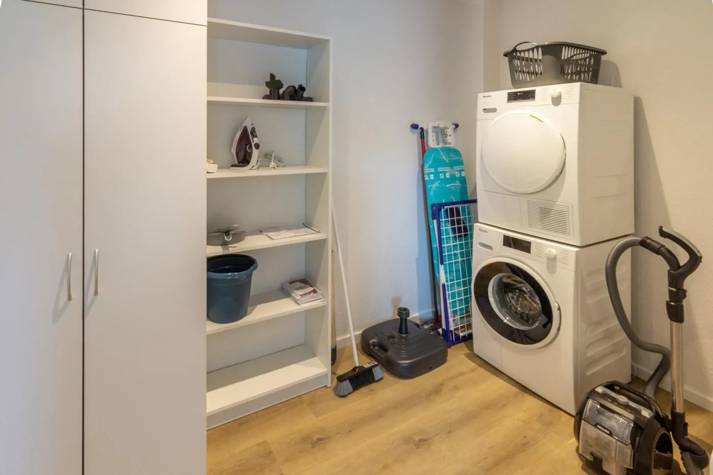 Eine hochwertige Miele Waschmaschine und Miele Wäschetrockner stehen zur freien Verfügung. Alle erforderlichen Utensilien wie ein Staubsauger, Wäscheständer, Bügelbrett, Bügeleisen, usw. stehen bereit.