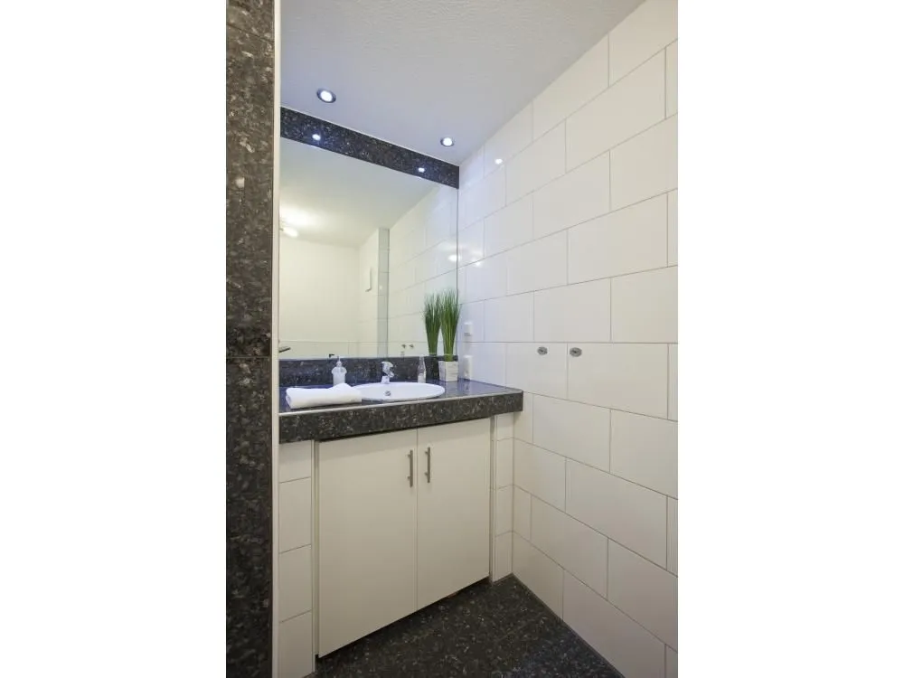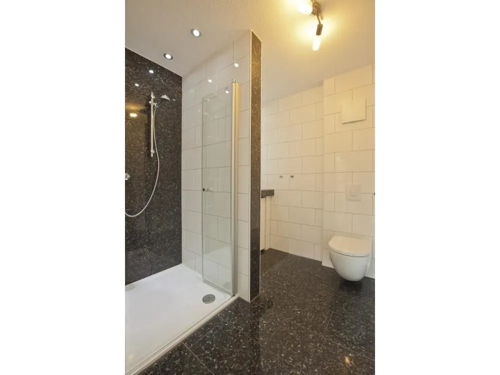 Das Bad ist mit einer großen Wellnessdusche (100x100cm) mit LED-Beleuchtung ausgestattet. Das Bad ist mit Blue Pearl Granit ausgestattet. Ein Fön, eine Waage sowie ein Handtuchwärmer sind selbstverständlich.
