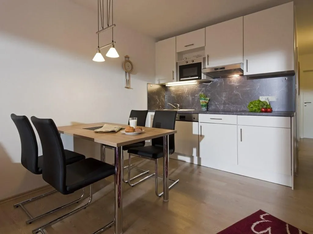 Das Wohnzimmer hat ein 3-Sitzer-Funktionssofa, 2 bequeme Cocktail-Sessel, einen Couchtisch, einen Esstisch mit 4 Schwinger-Stühlen, moderne Wohnwand incl. TV-Flachbildschirm zum Wohlfühlen, Radio, Tischlampe und Stehlampe geben gemütliches Licht. Schöne Bilder und moderne, wechselnde Dekoration schaffen eine Atmosphäre zum Wohlfühlen.