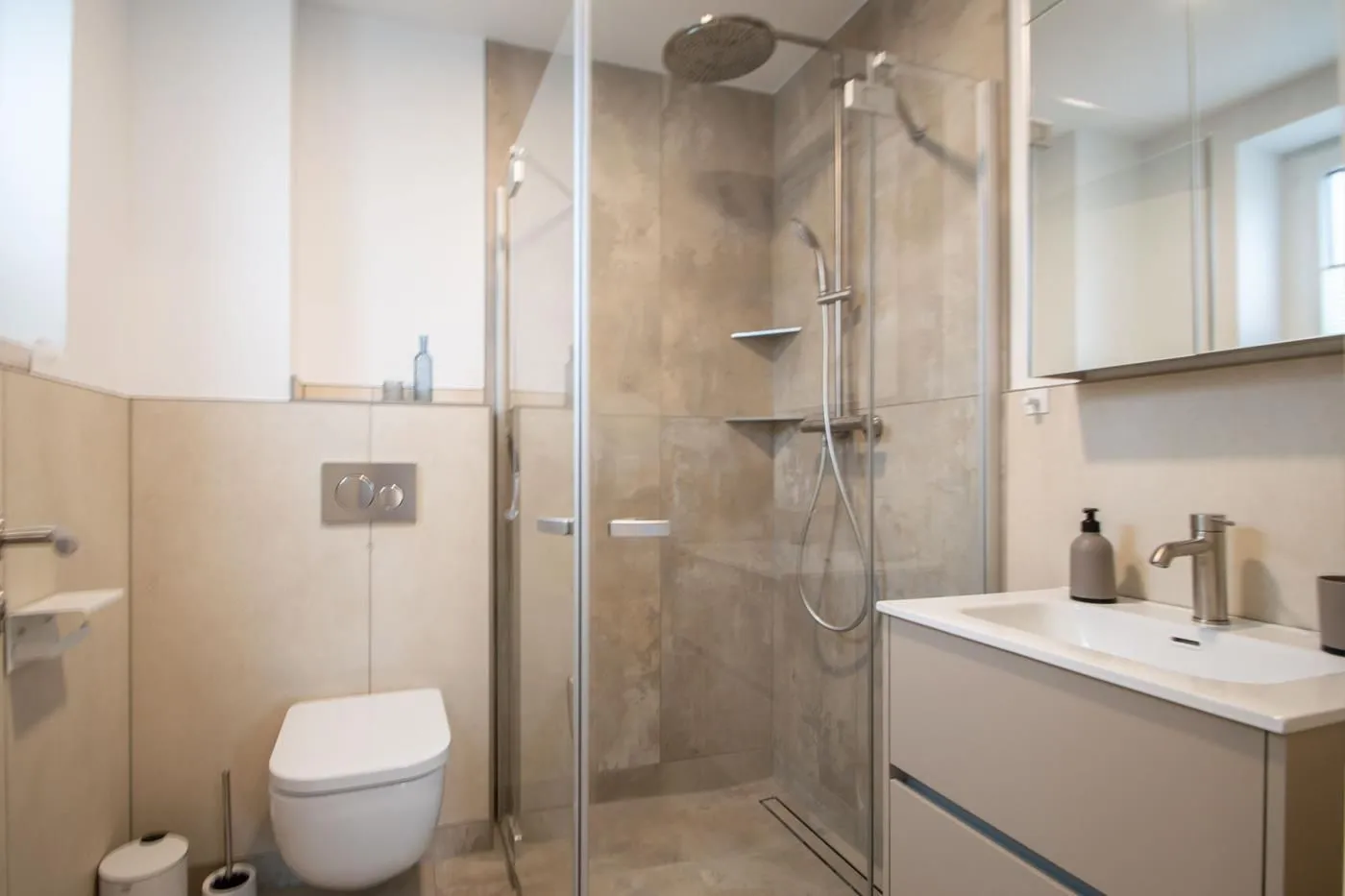 Zwei separate Bäder mit bodentiefer Dusche und WC