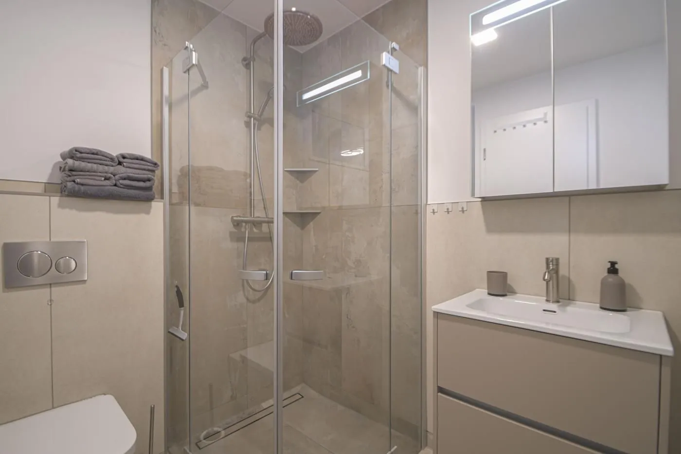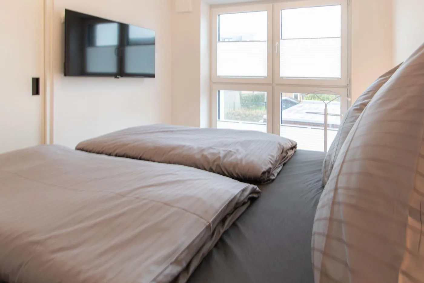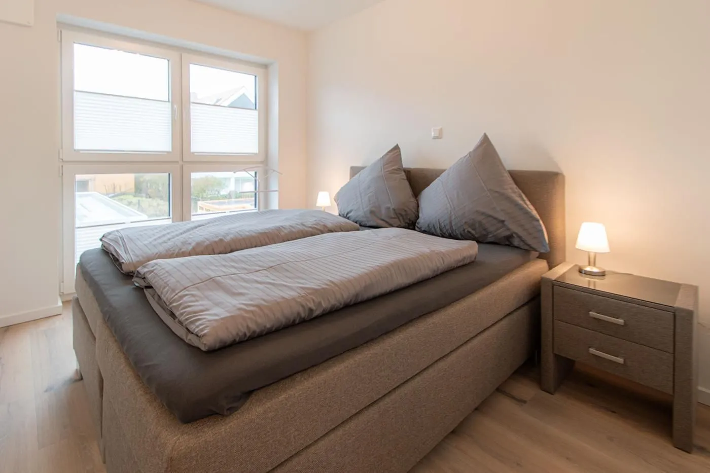 Ihre Ferienwohnung verfügt über drei separate Schlafzimmer. In zwei Schlafzimmern finden Sie hochwertige Boxspringbetten (180 x 200cm sowie 160 x 200cm). Ein Schlafzimmer verfügt über ein bequemes Einzelbett.