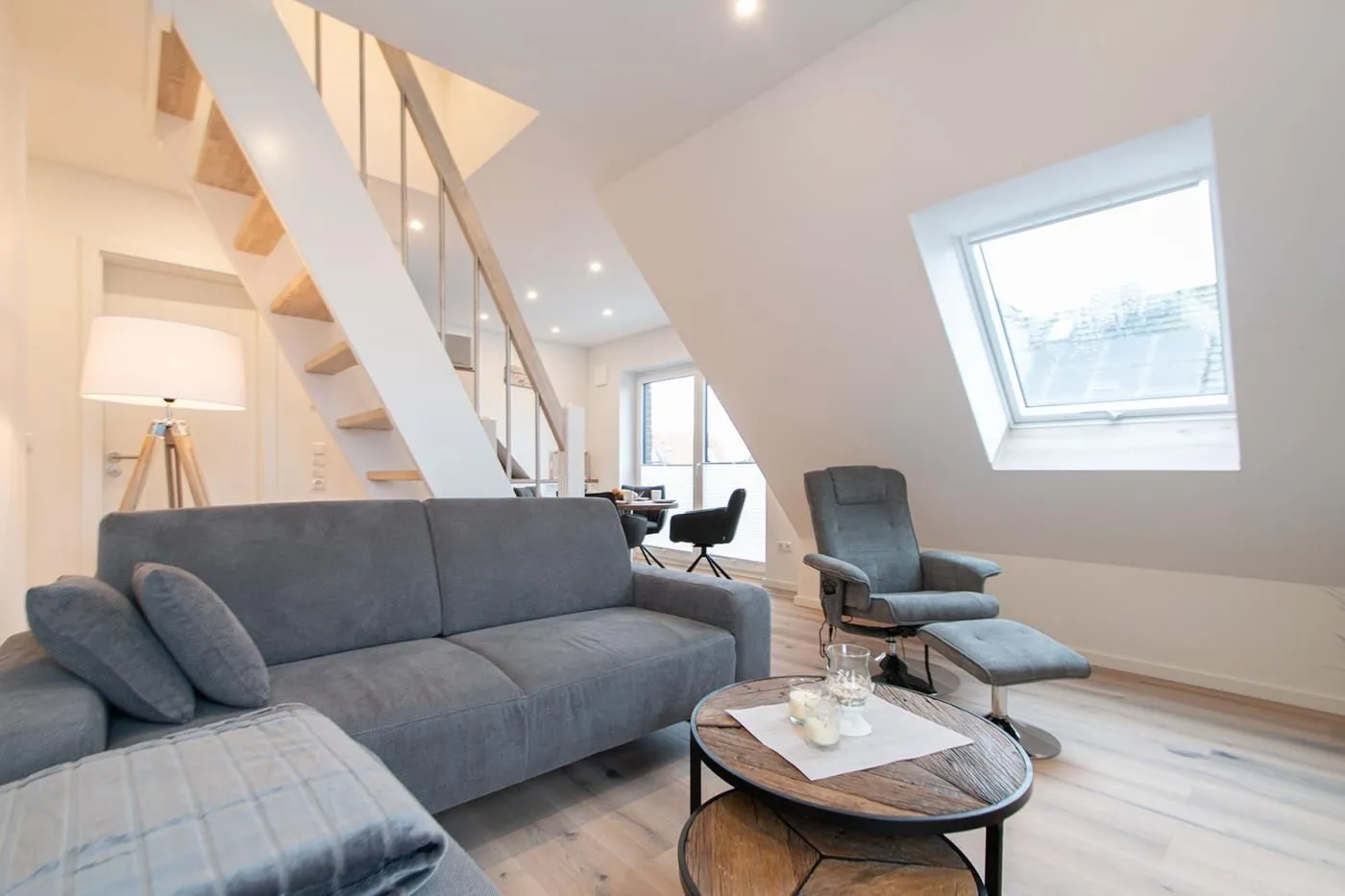 Norderney zum Wohlfühlen! Das 2024 neu erbaute Appartementhaus in der Nordhelmstraße besticht durch eine exzellente Lage und höchsten Wohnkomfort in ruhiger Umgebung. Den feinen Nordbadestrand der Insel erreichen Sie in ca. 3 Minuten Fußweg. Die quirlige Innenstadt ist in ca. 10 Minuten mit dem Fahrrad zu erreichen. Ihre Ferienwohnung befindet sich im 1. Obergeschoss des Hauses und ist bequem mit dem Fahrstuhl erreichbar. . Sie verfügt über eine Wohnfläche von ca. 75m² und bietet maximal Platz für vier erwachsene Personen + ein Kleinkind (Reisebett und Hochstuhl vorhanden)