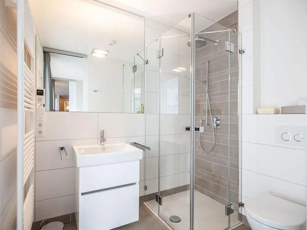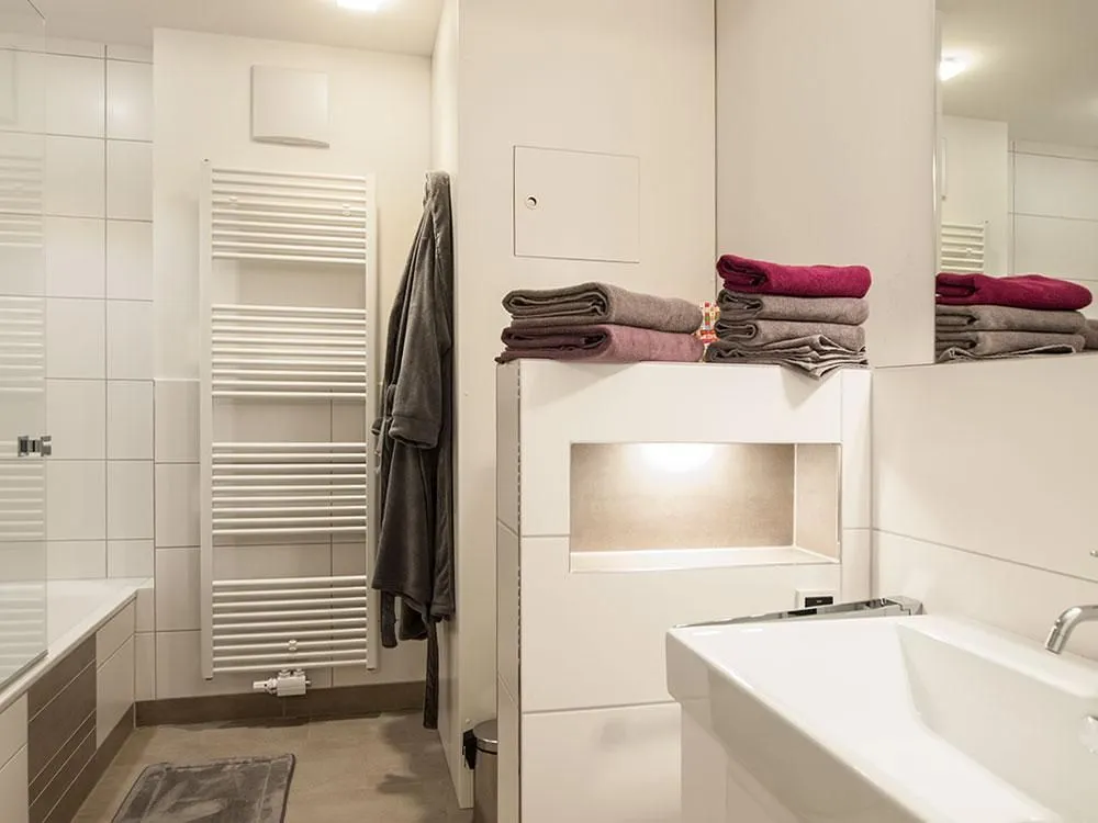 Geruhsame Nächte sind in den drei Schlafzimmern garantiert, die jeweils eine entspannende Atmosphäre bieten und mit komfortablen Betten ausgestattet sind. Das Hauptbadezimmer verfügt über eine luxuriöse Badewanne, während das zweite Badezimmer mit einer modernen Dusche ausgestattet ist. Beide Badezimmer sind mit Fußbodenheizung versehen. Ein Haartrockner und weitere nützliche Utensilien stehen ebenfalls zur Verfügung.