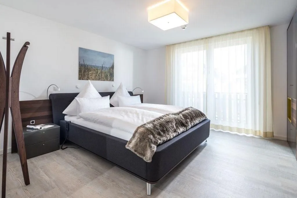 Die bequemen Betten in der Größe von 180 x 210cm sind separat am Kopf- und Fußteil elektrisch höhenverstellbar. Ein Nachttisch,