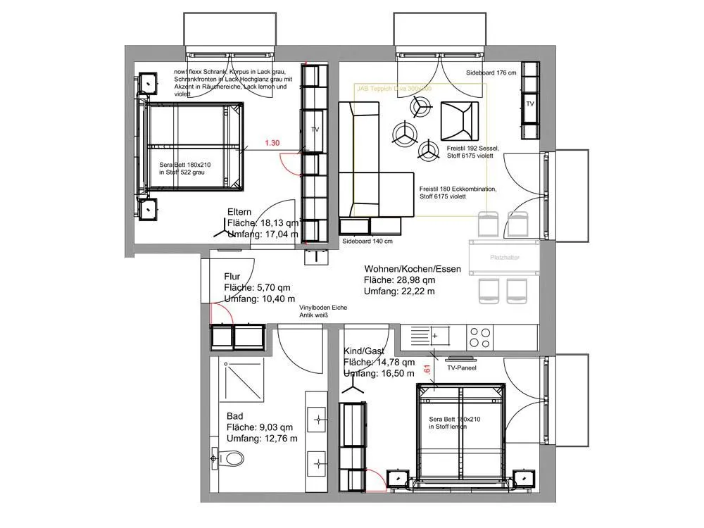 und ein 32 Zoll Flachbildfernseher zur Ausstattung.
