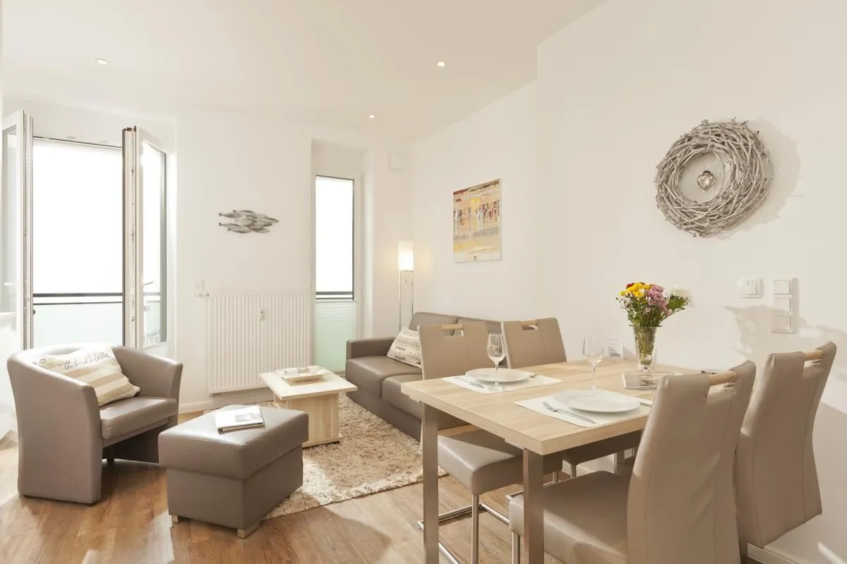 Haus Meeresloft – FW 1 bietet Ihnen auf 44 m² ein modernes und komfortables Ambiente im Zentrum von Norderney. Die Ferienwohnung eignet sich optimal für zwei Personen und verfügt über zwei Räume, darunter ein separates Schlafzimmer und einen Wohnbereich, der auf stilvolle Weise Gemütlichkeit und Funktionalität verbindet. Die gesamte Unterkunft ist allergikergeeignet und als Nichtraucherunterkunft ausgewiesen, sodass Sie einen sorglosen Aufenthalt genießen können.