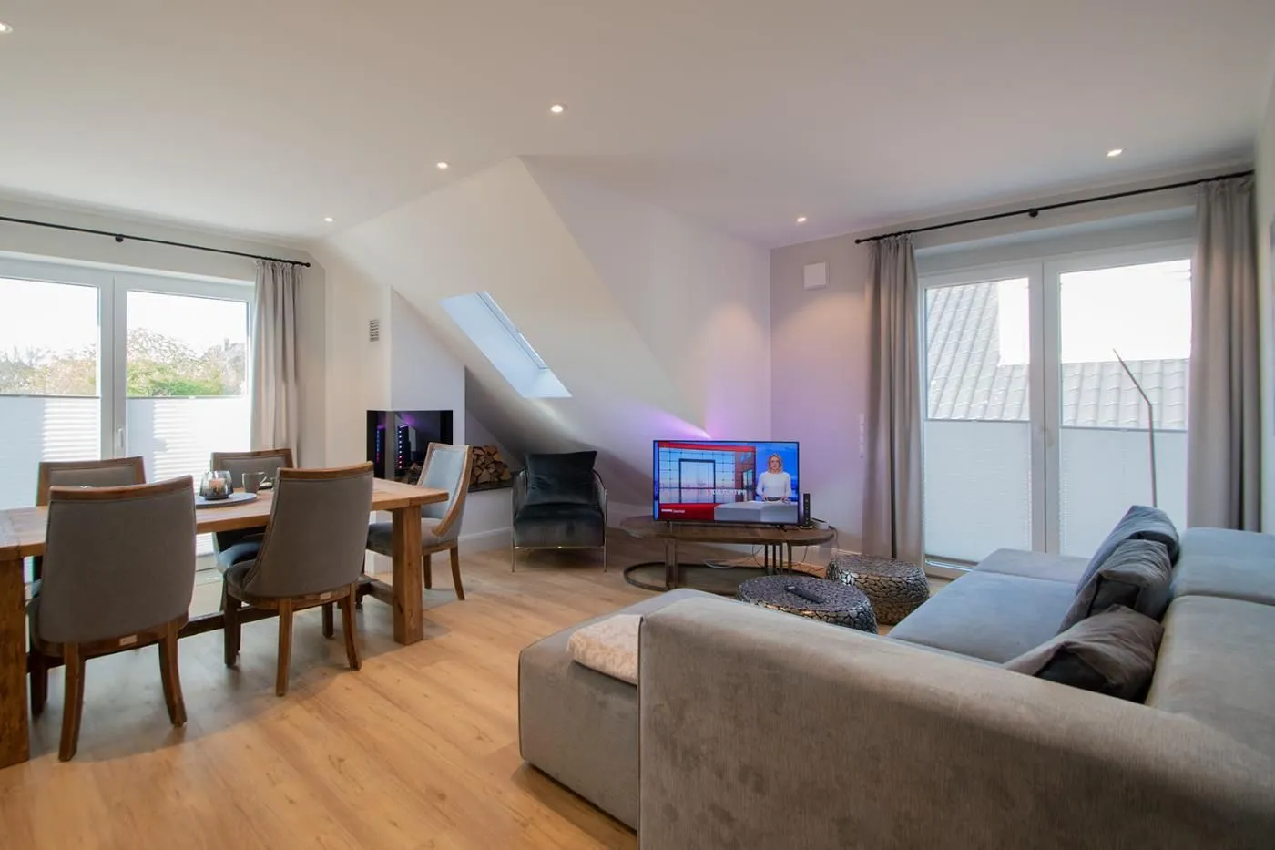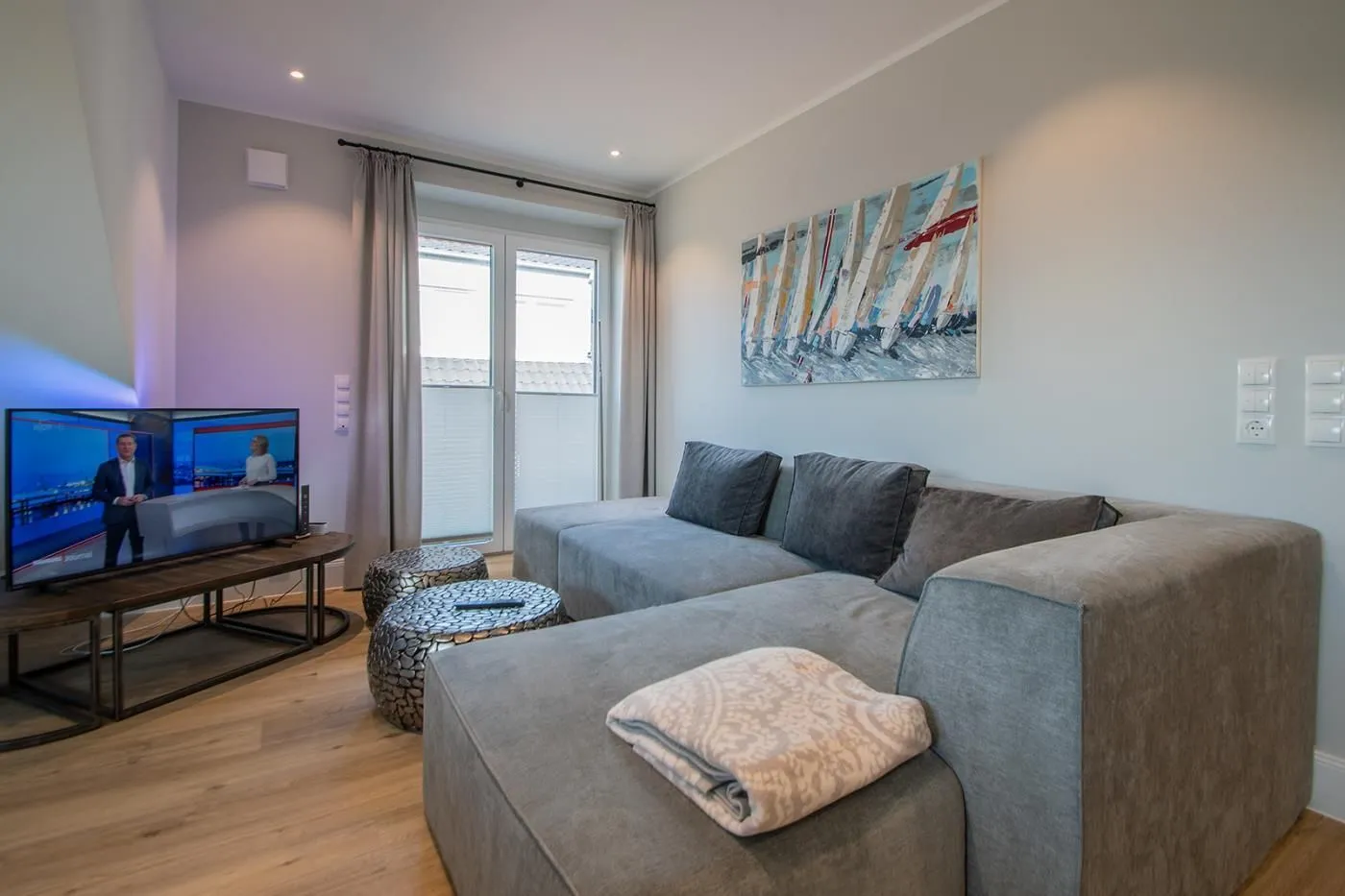 - Wohnbereich mit gemütlichem Sofa und Flachbildfernseher