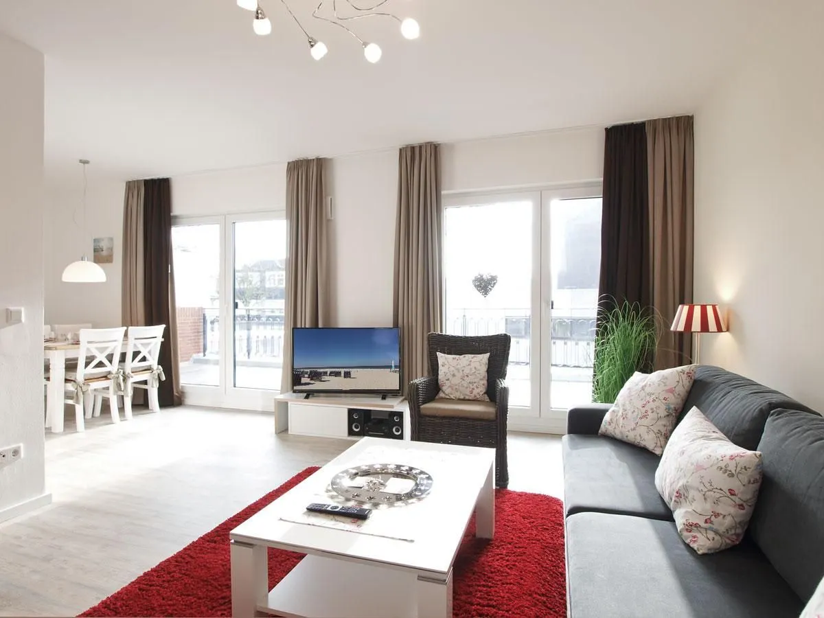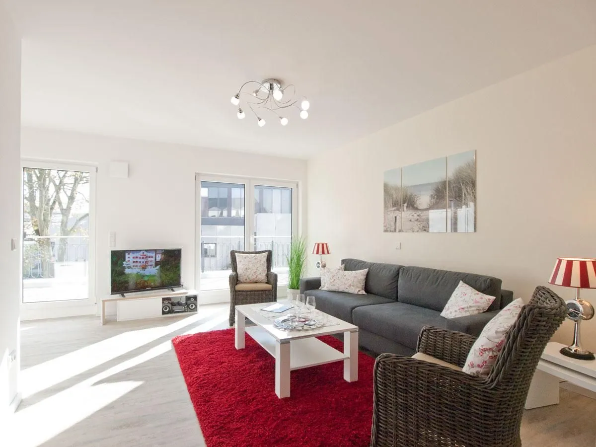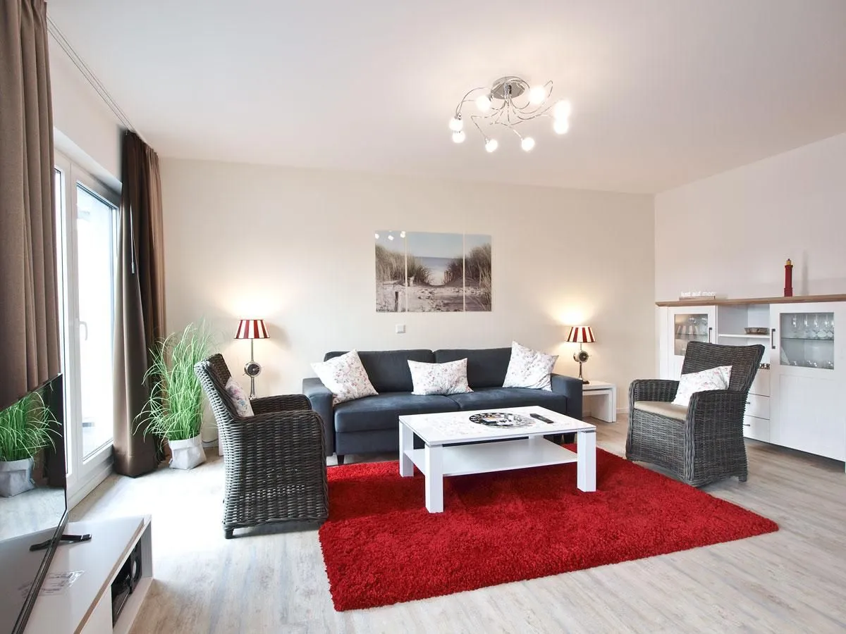 Großzügiger Wohnraum mit offenem Küchen- und Essbereich für 4 Personen Gemütliches Schlaf-Sofa, Couchtisch, 2 Korbsessel, Kleiderschrank, Flachbildfernseher, Mikro-Stereoanlage mit Bluetooth-Funktion