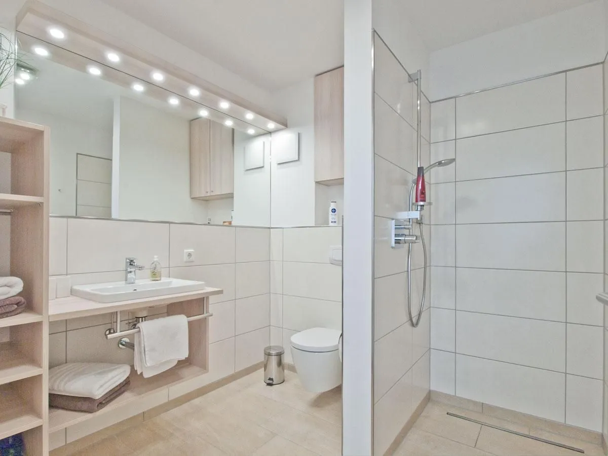 Bodenebene Dusche, WC, Fön, Handtuchtrockner