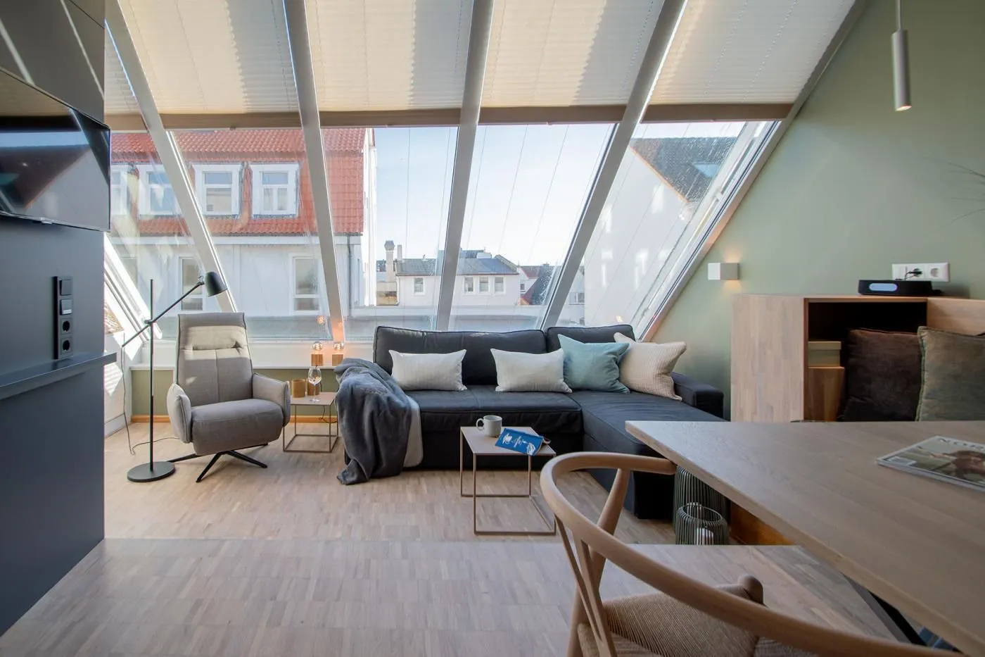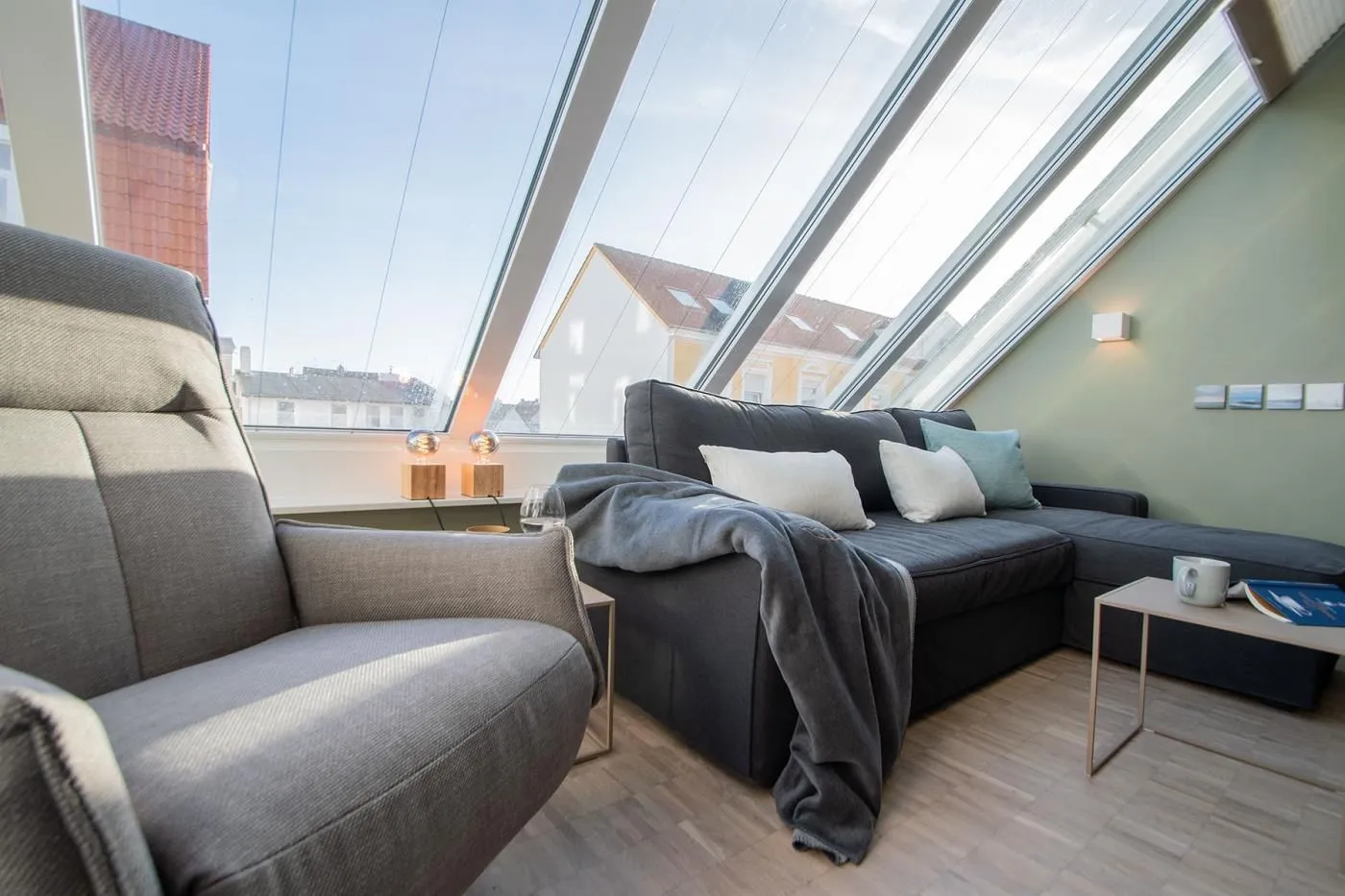 Hier beginnt Ihr Urlaub - moderne und exklusiv eingerichtete Ferienwohnung in strand- und stadtnaher Lage. Im 1. Obergeschoss (Fahrstuhl vorhanden) des Fürstenhofs Norderney finden Sie Ihr Urlaubsdomizil mit einem Schlafzimmer, luftigem Wohnbereich, Bad und großem Balkon.