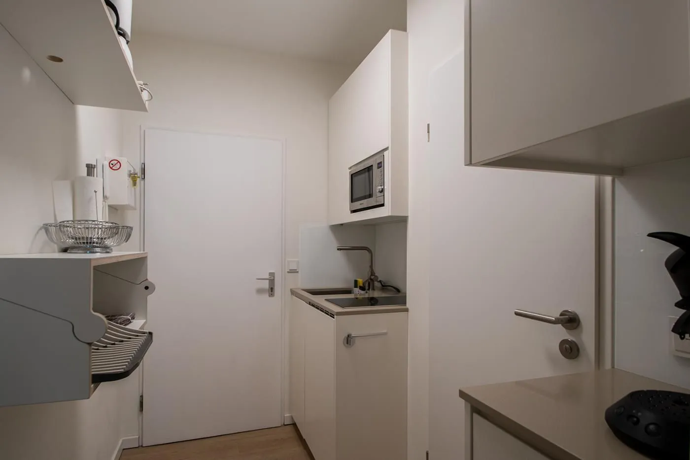 Ihr Ferienappartement verfügt über eine moderne kleine Küche mit Kühlschrank, Kaffeepad-Maschine, Mikrowelle u.v.m.