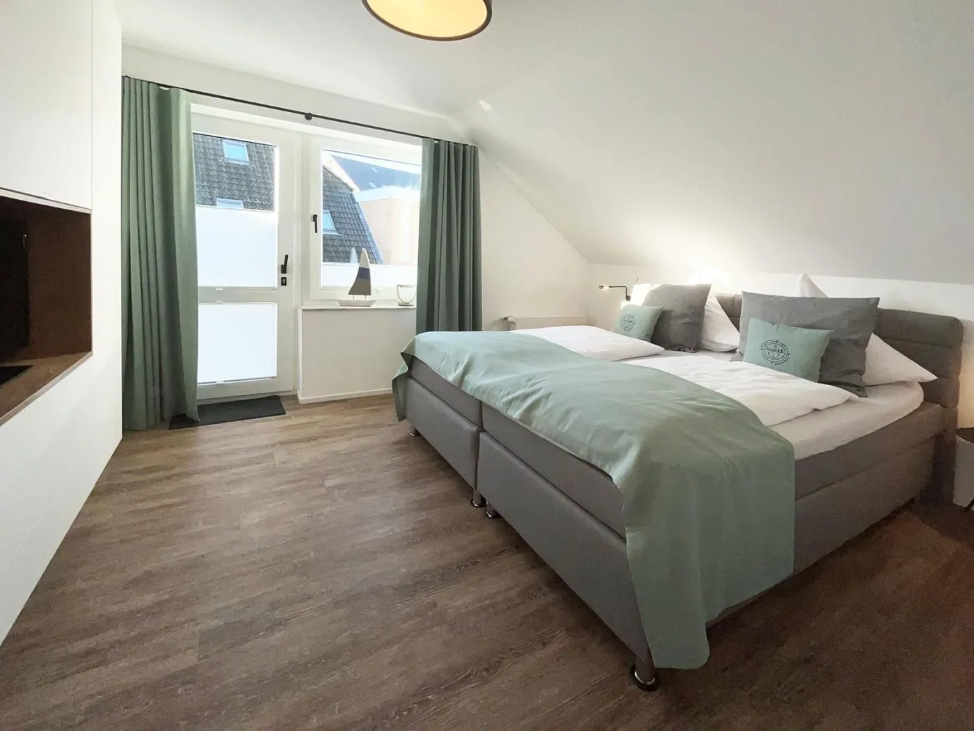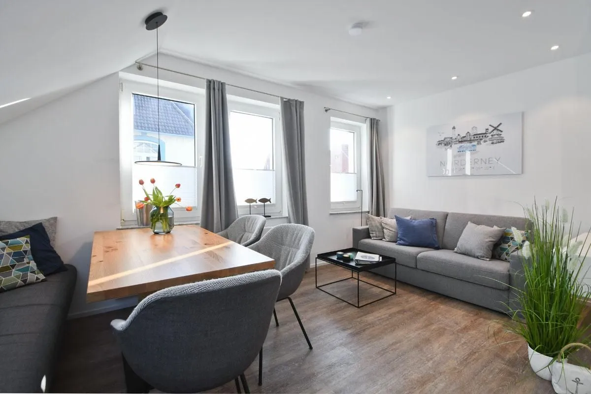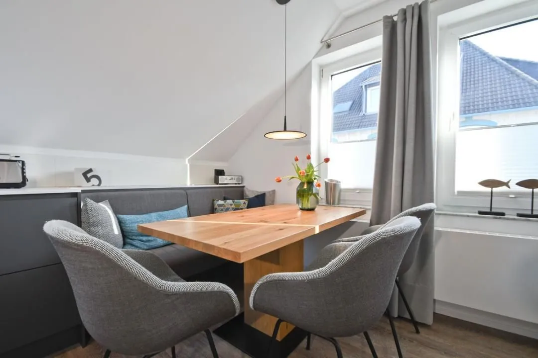Einen Steinwurf vom Meer entfernt, liegt das Haus Filia Maris. In diesem alten Haus im typischen Inselstil wurden unter Erhaltung der ursprünglichen Bausubstanz sechs gemütliche, großräumige Ferienwohnungen nach wohnbiologischen Gesichtspunkten geschaffen. Die Ferienwohnung koje15 liegt im ersten Obergeschoss und verfügt über über 45m² Wohnfläche, die sich auf den lichtdurchfluteten Wohn-Essraum mit offenem Küchenbereich, einem großen Schlafzimmer mit angrenzender Dachterrasse, einem komfortablen Badezimmer und einer kleinen Schlafkoje verteilen. Diese wurde zugleich Namensgeber für die Wohnung – unserer koje15.
