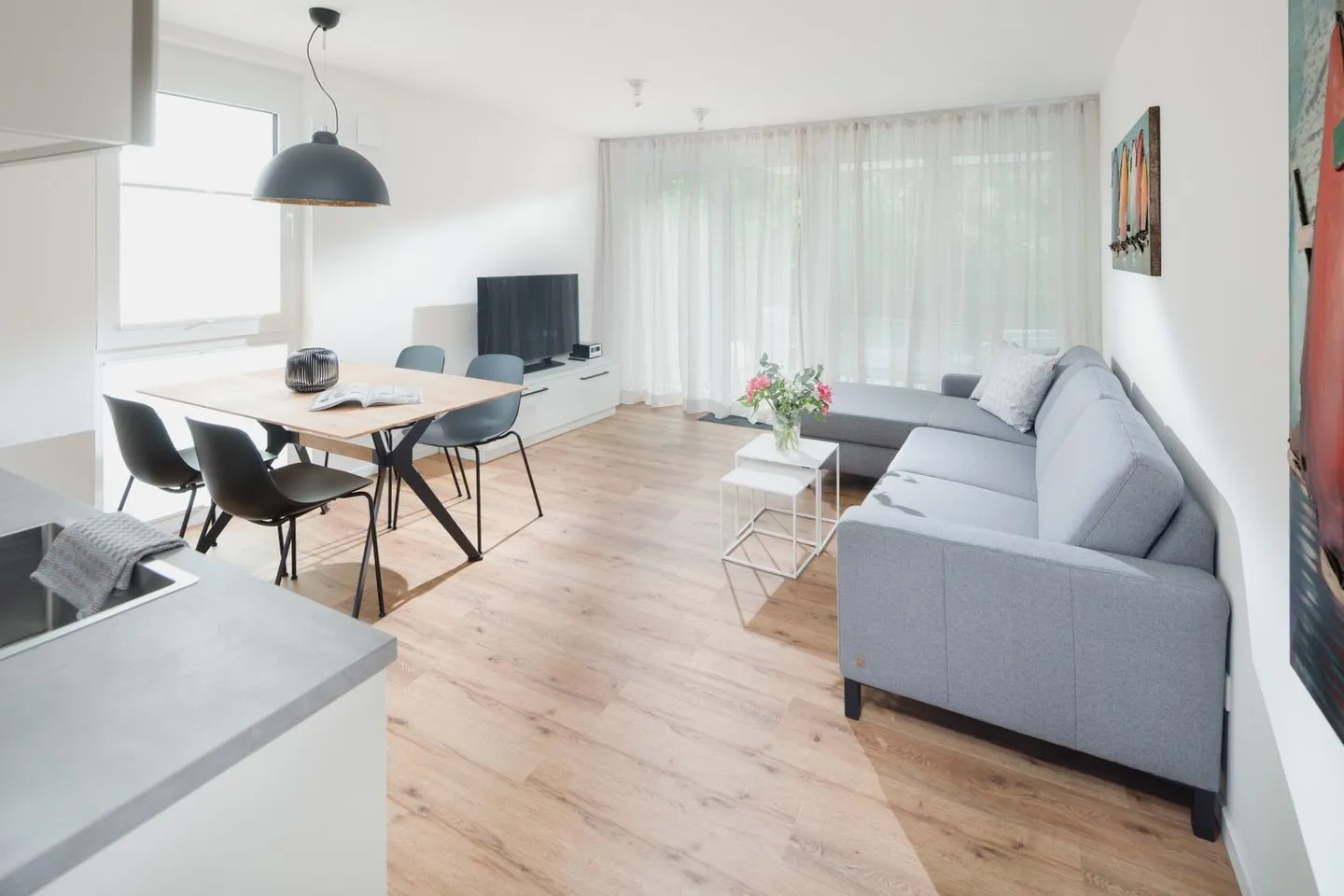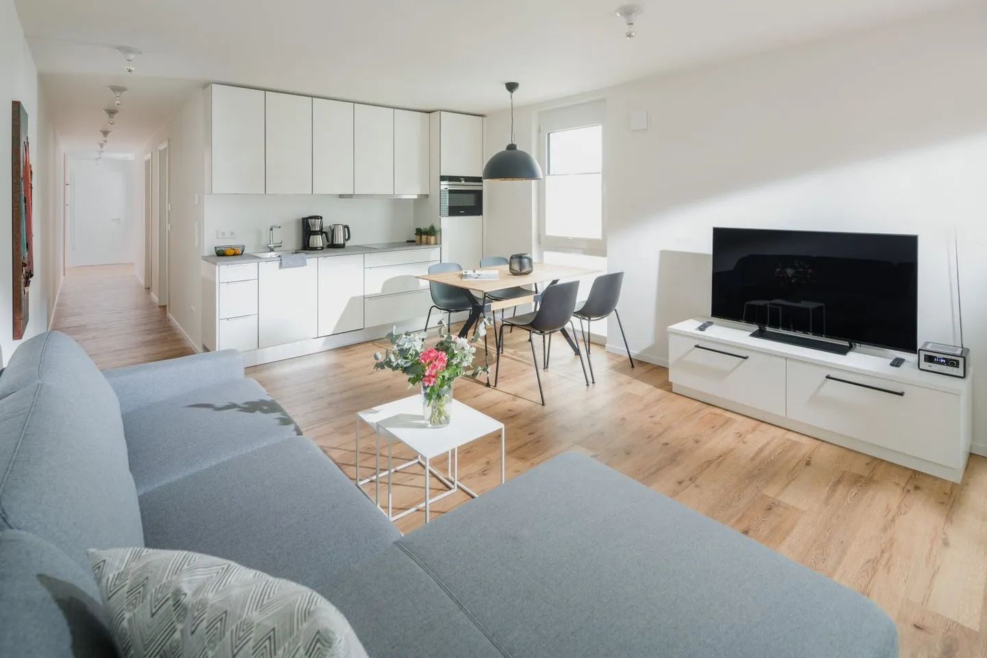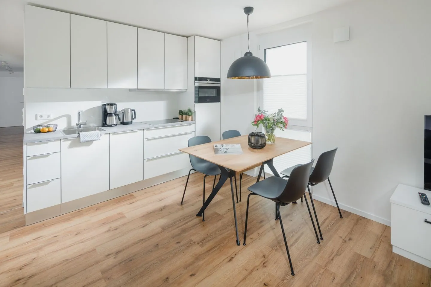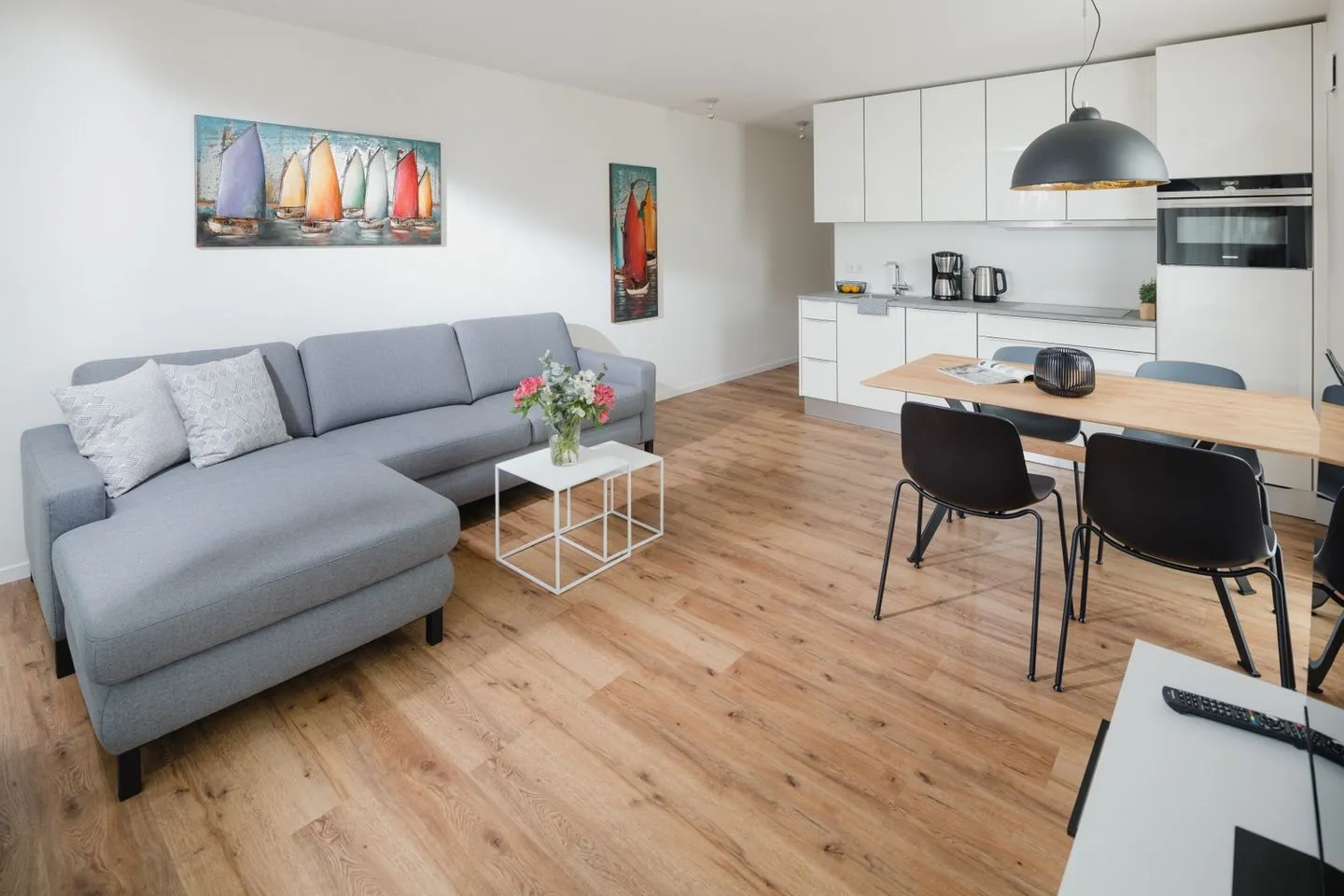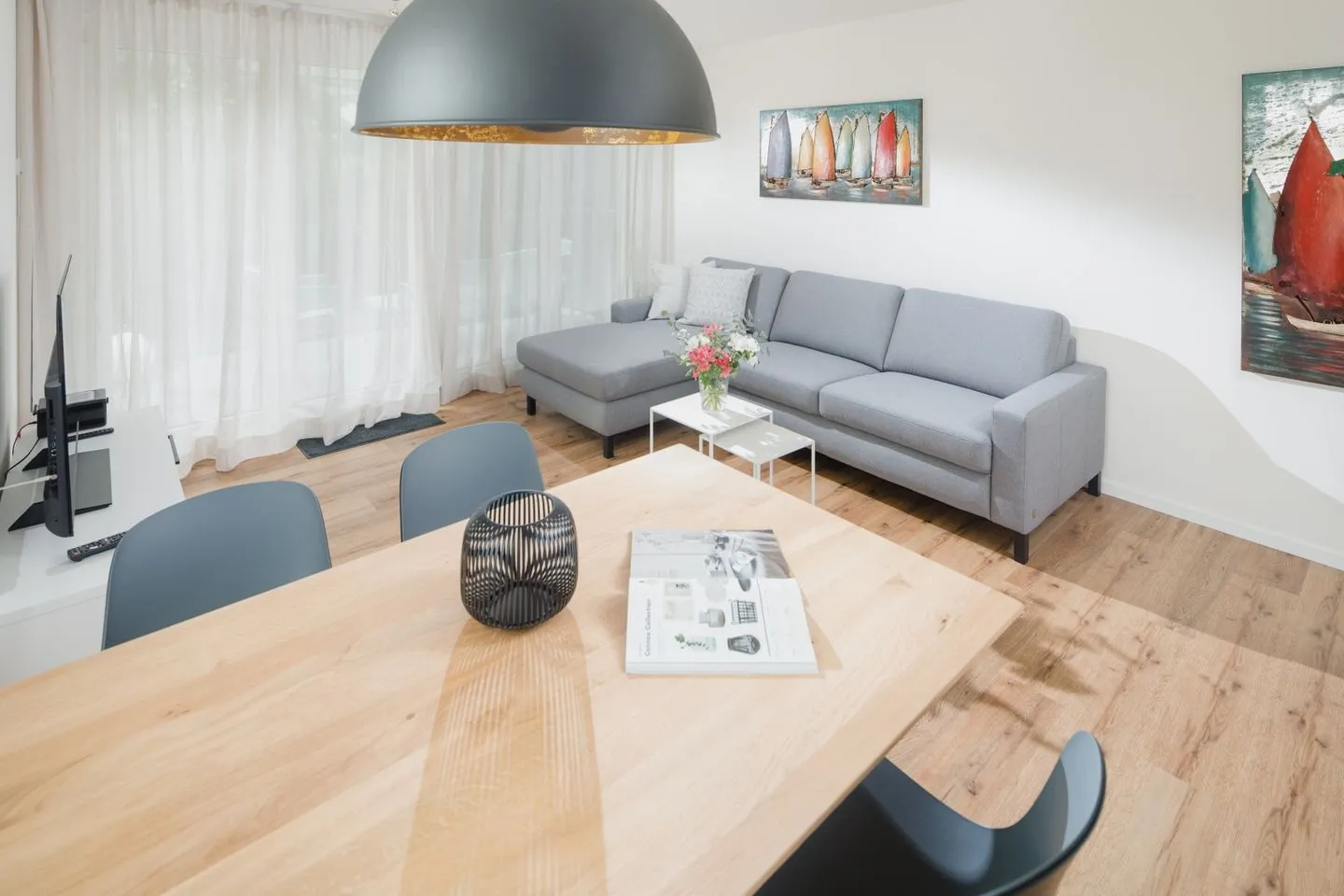 Die 2021 fertiggestellte Ferienwohnung im 1. Obergeschoss des modernen Appartmenthauses Deck 17 bietet auf ca. 60 qm ein exklusives Urlaubserlebnis auf der Insel Norderney. Die Wohnung ist direkt am Kurpark gelegen und verfügt über zwei Schlafzimmer, einen Wohnbereich mit offener Küche, ein Bad mit Dusche/WC. Der teilüberdachte Balkon, mit freiem Blick ins Grüne, ist mit originellen Gartenmöbeln ausgestattet sowie einer Leuchtkugel für die Abendstunden.