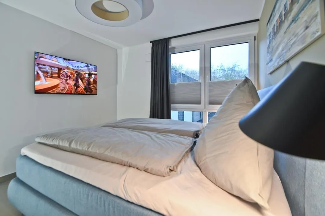 Die 2021 fertiggestellte Luxus-Ferienwohnung im 2. Obergeschoss bietet auf ca. 53m? Platz für 4 Personen und bietet einen modernen Grundriss mit offenem Wohn- und Kochbereich, zwei Schlafzimmern, einem Bad, einem Gäste-WC und einem sonnigen Südbalkon.