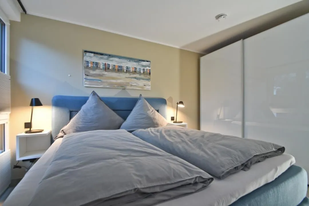 Im großen Schlafzimmer wartet ein hochwertiges, ein bequemes Boxspringbett (180x200 cm) und ein