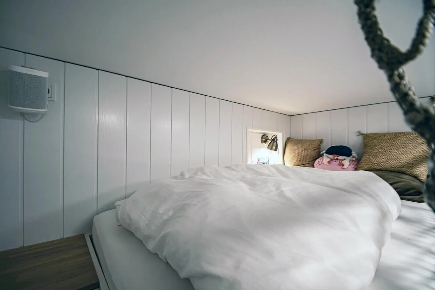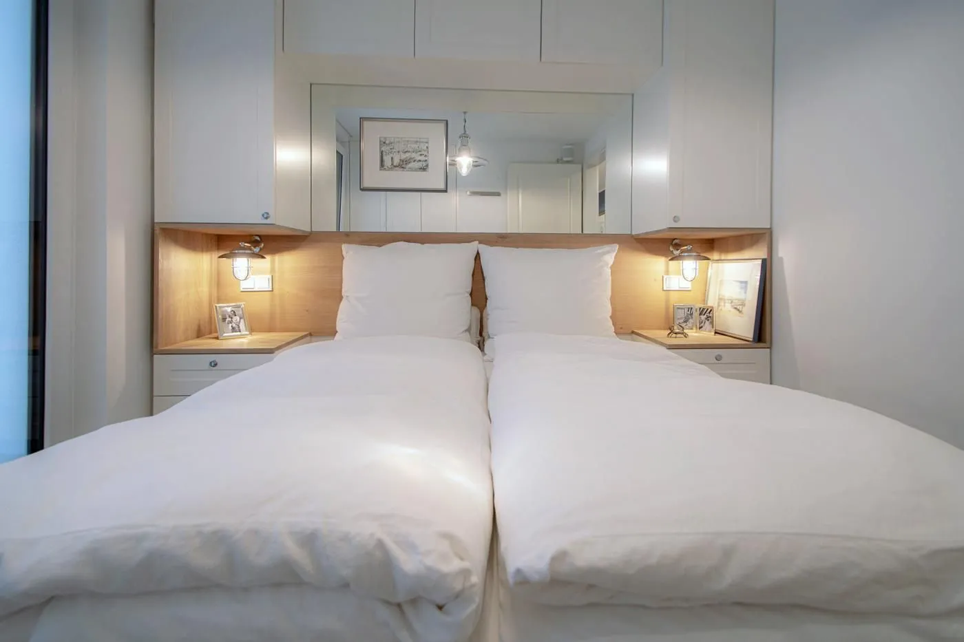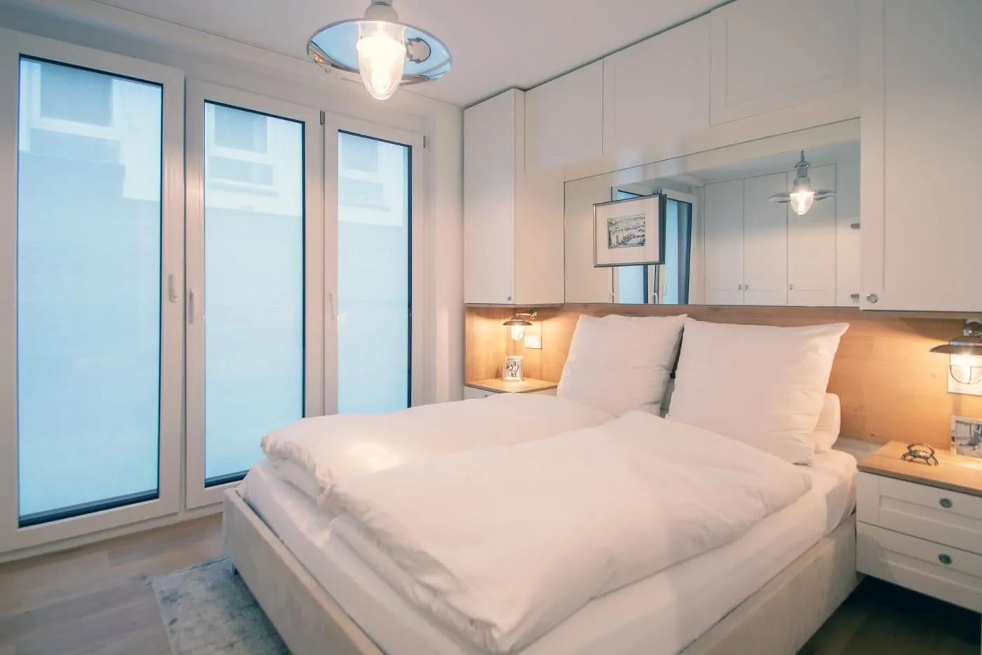 Das zweite Schlafzimmer Ihrer Ferienwohnung ist ein Paradies für Kinder und Jugendliche. Es bietet eine gemütliche Doppelstockbettkoje mit einem größeren Bett und einem 90cm Bett. Die Bettlänge beträgt 1,80m.