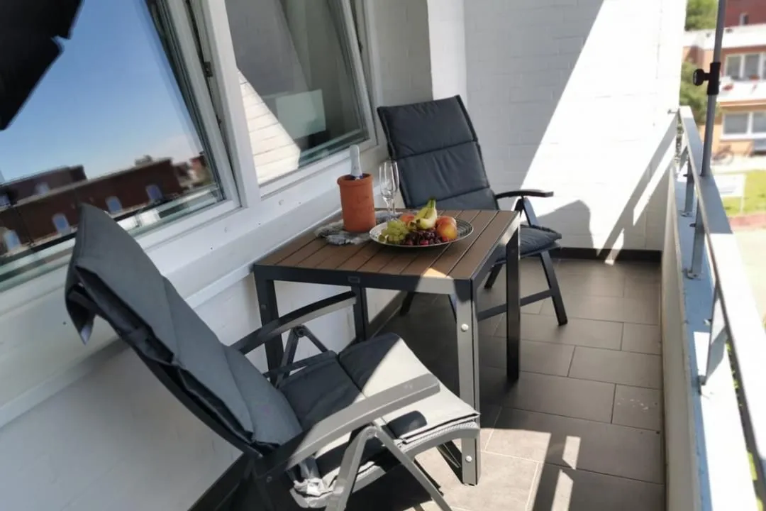 In einer ruhigen Seitenstrasse, unweit des Surfcafés und der Strandpromenade, finden Sie unser gemütliches Ferienappartement für 2 Personen. Die Ferienwohnung liegt im 2. OG und verfügt über eine Wohnfläche von ca. 32qm, aufgeteilt in einen Wohnraum mit offenem Küchenbereich, einer gemütlichen Schlafkoje, einem Bad mit Dusche und WC sowie einem großen Balkon.