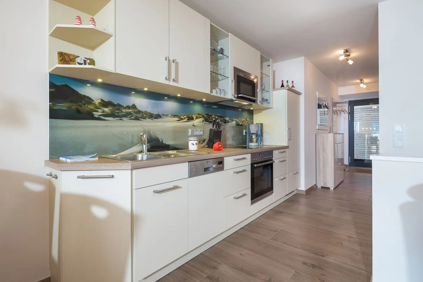 Ceran-Kochfeld, Backofen, Geschirrspüler, Kühlschrank mit Gefrierfach, Mikrowelle