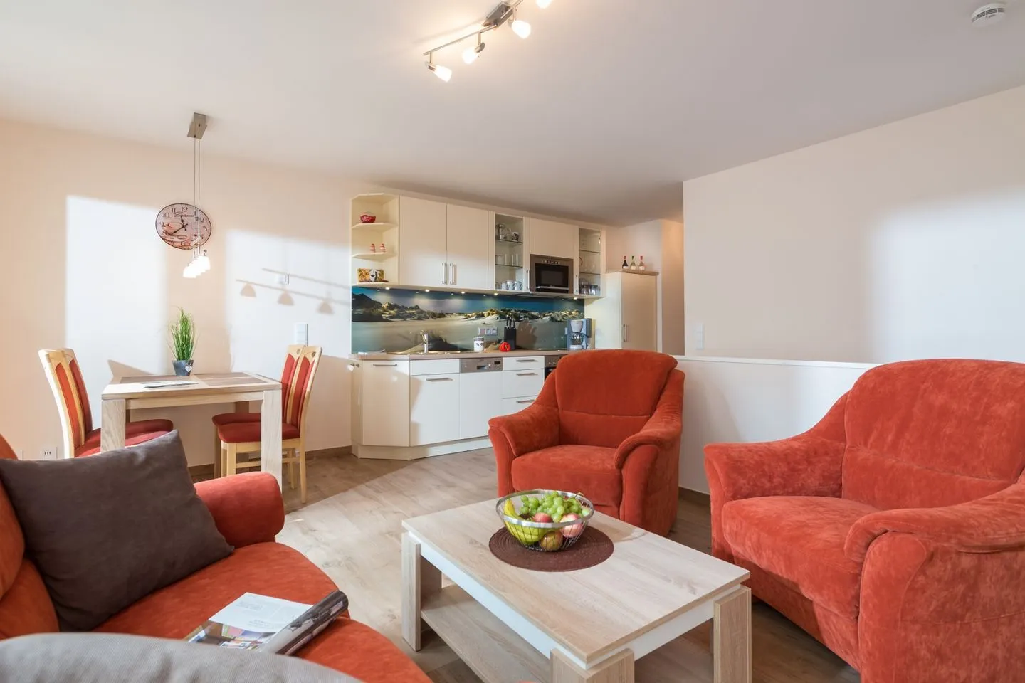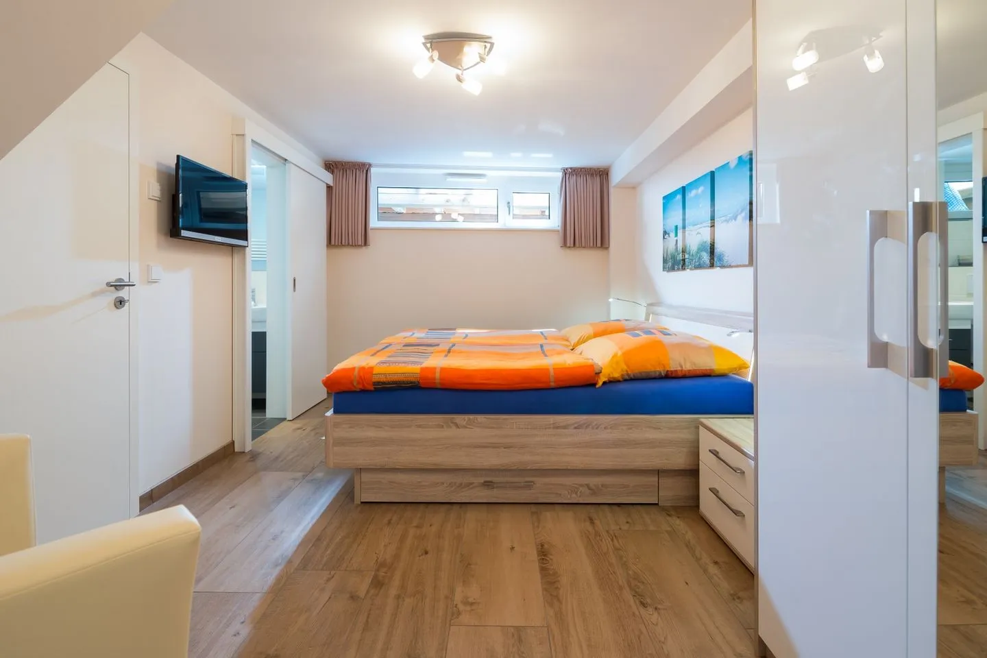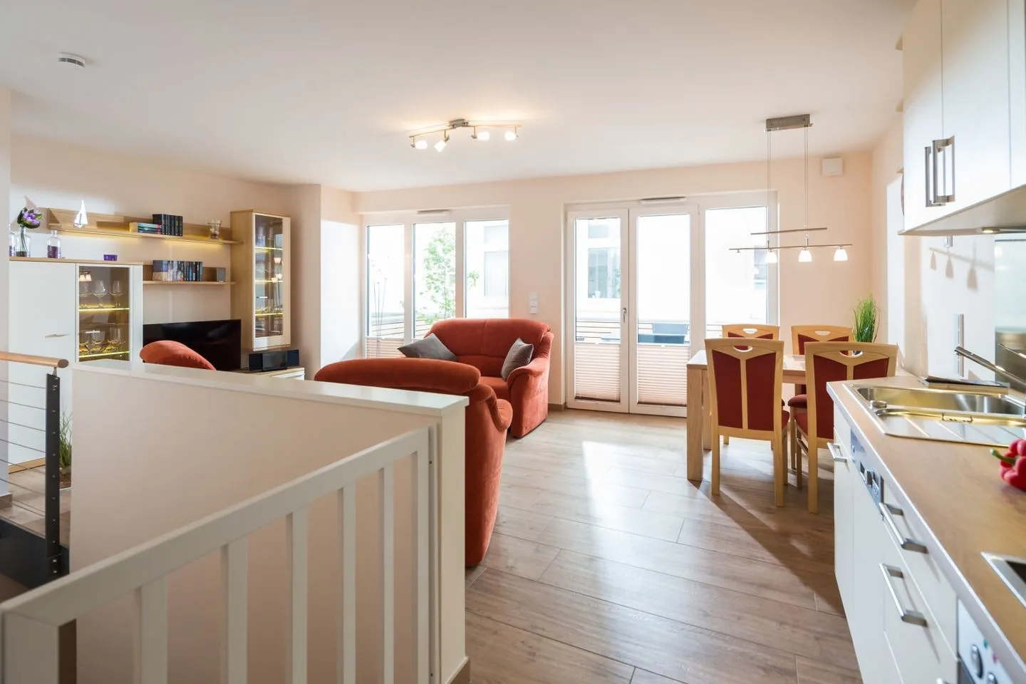 Genießen Sie Ihren Urlaub auf Norderney in unserer gemütlichen und komfortablen Ferienwohnung in erstklassiger Lage. Das Appartementhaus „Schippers Huus“ liegt in unmittelbarer Nähe zur Strandprommenade und zur Fußgängerzone. Die Ferienwohnung bietet auf einer Wohnfläche von ca. 65 qm Platz für 4 Personen Erdgeschoss und Souterrain). Im Erdgeschoss befindet sich der Wohnraum mit offenem Küchenbereich und Ausgang zur Terrasse, ein Schlafzimmer und eines der beiden Bäder. Über eine Treppe gelangen Sie in das Souterrain der Wohnung. Hier befindet sich das zweite Schlafzimmer sowie ein weiteres Bad.
