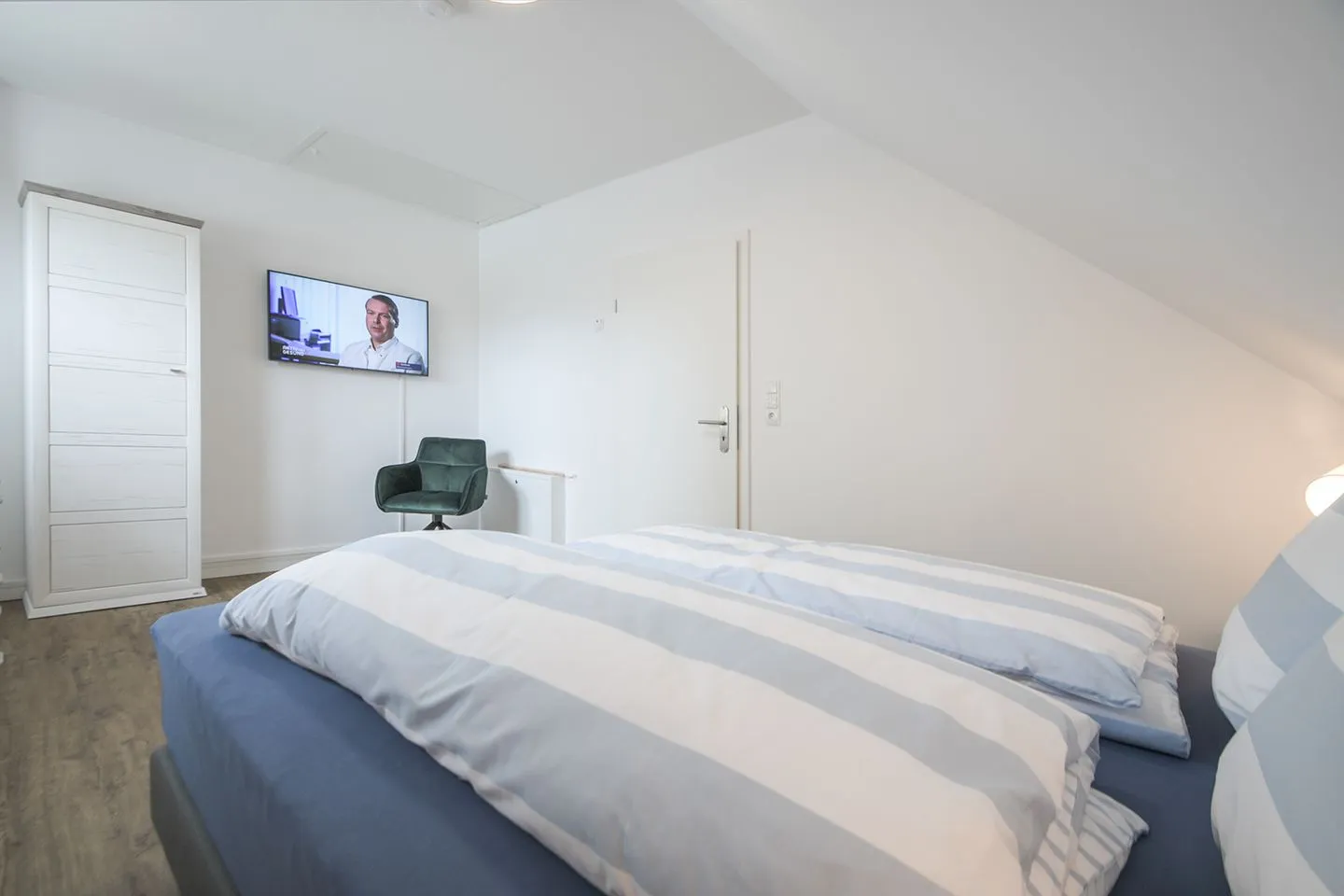 - Schlafzimmer mit Dream Deluxe Boxspring-Doppelbetten, Kleiderschränken und Flachbildfernseher