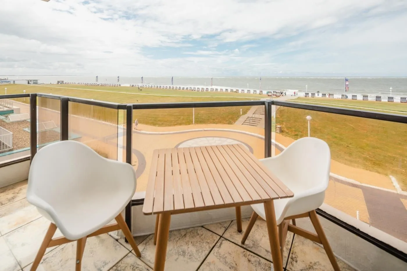 Moderne Ferienwohnung mit spektakulärem Meerblick und großer Terrasse. Auf einer Wohnfläche von ca. 45m² finden Sie ein exklusives, lichtdurchflutetes Ferienapparrtement für 2-3 Personen. Neben einem großen Wohnbereich mit offener Küche verfügt diese Ferienwohnung über ein separates Schlafzimmer, ein Bad mit WC und einen großen Balkon.